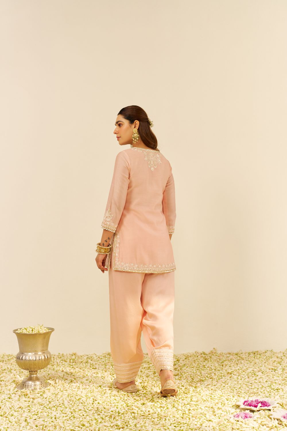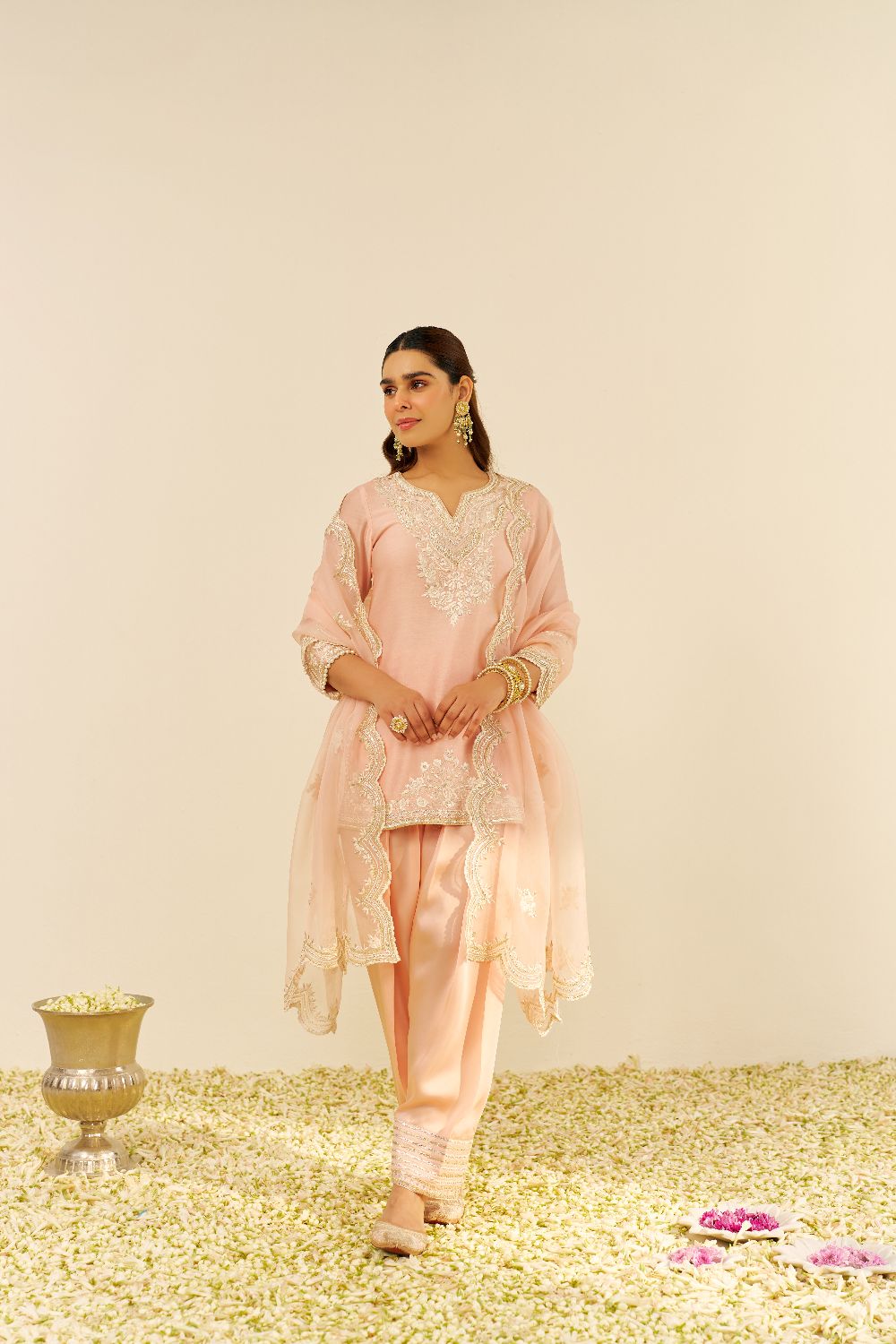 Haniya - Short Kurta With Salwar And Dupatta-Off Rose