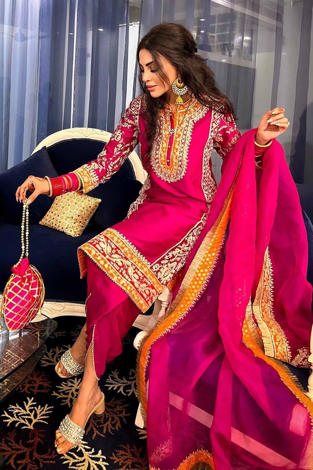 Mehnoor Straight kurta with dhoti-Hotpink