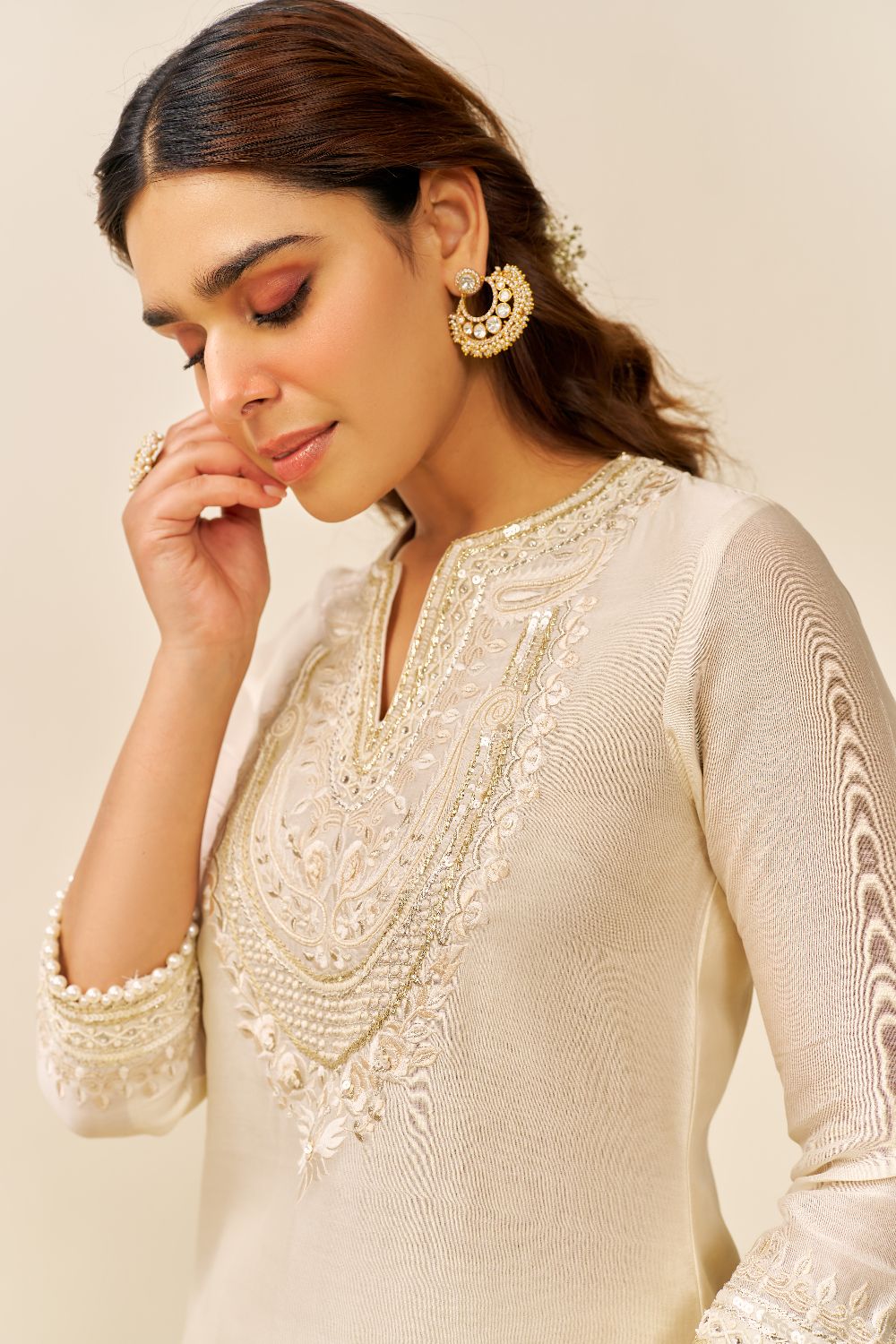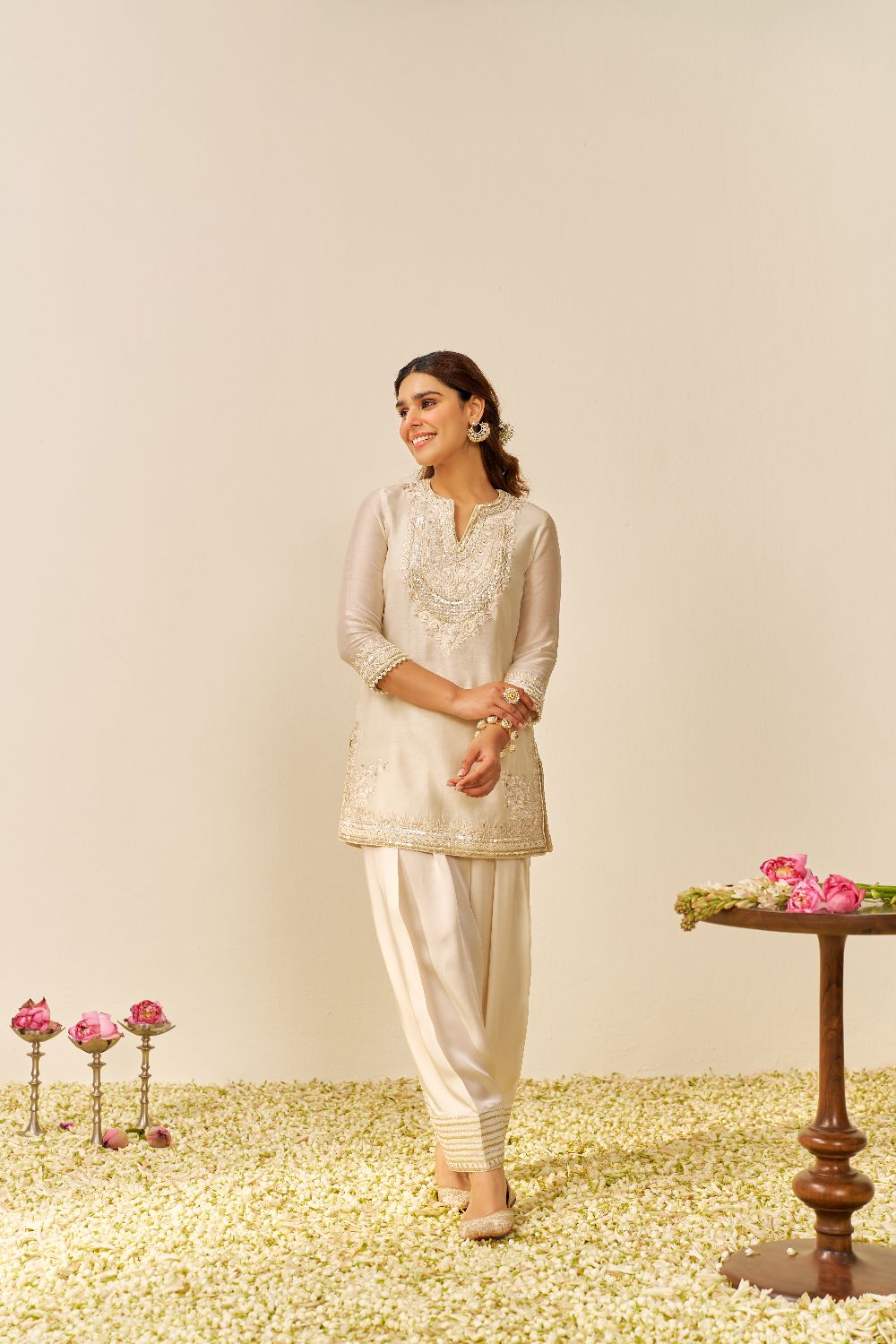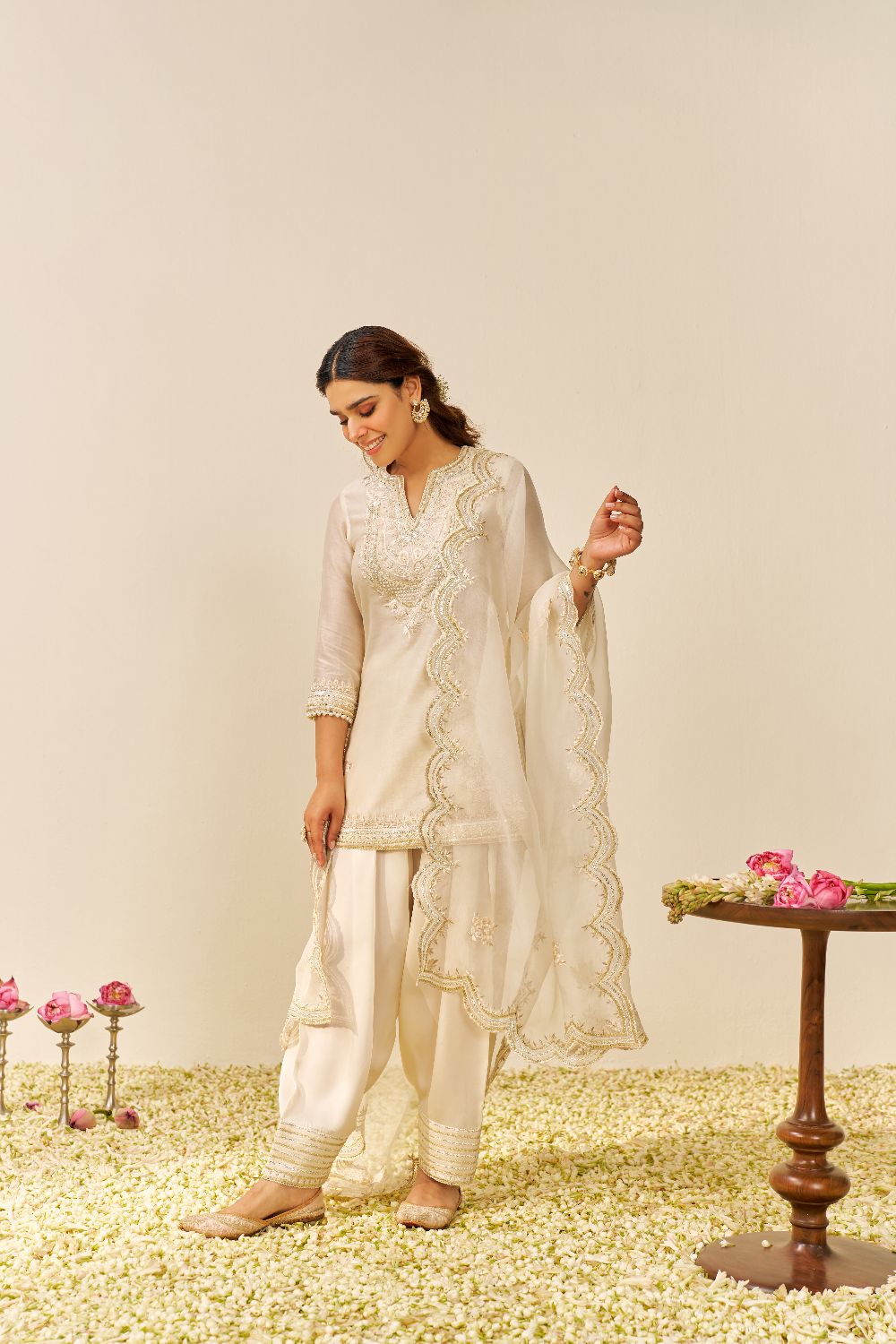 Sara - Short Kurta With Salwar And Dupatta-Daisy Ivory