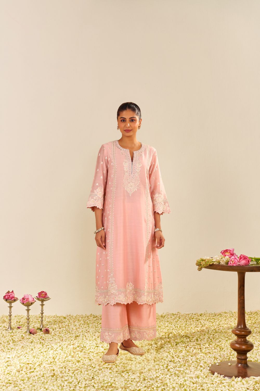 Sumaiya - A-Line Kurta With Palazzo And Dupatta-Blush Pink