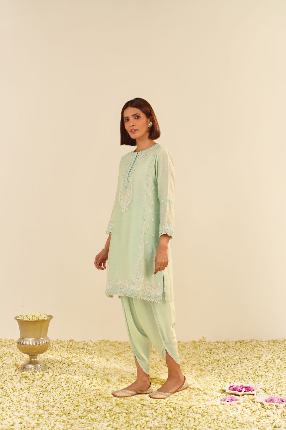 Zahra - Short Kurta With Dhoti-Mint Green