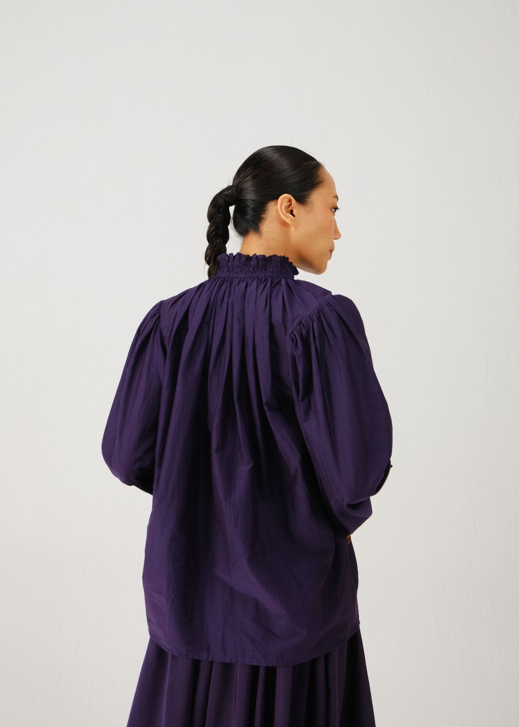 Details: Smocking details on the cuff and neck, front button fastening