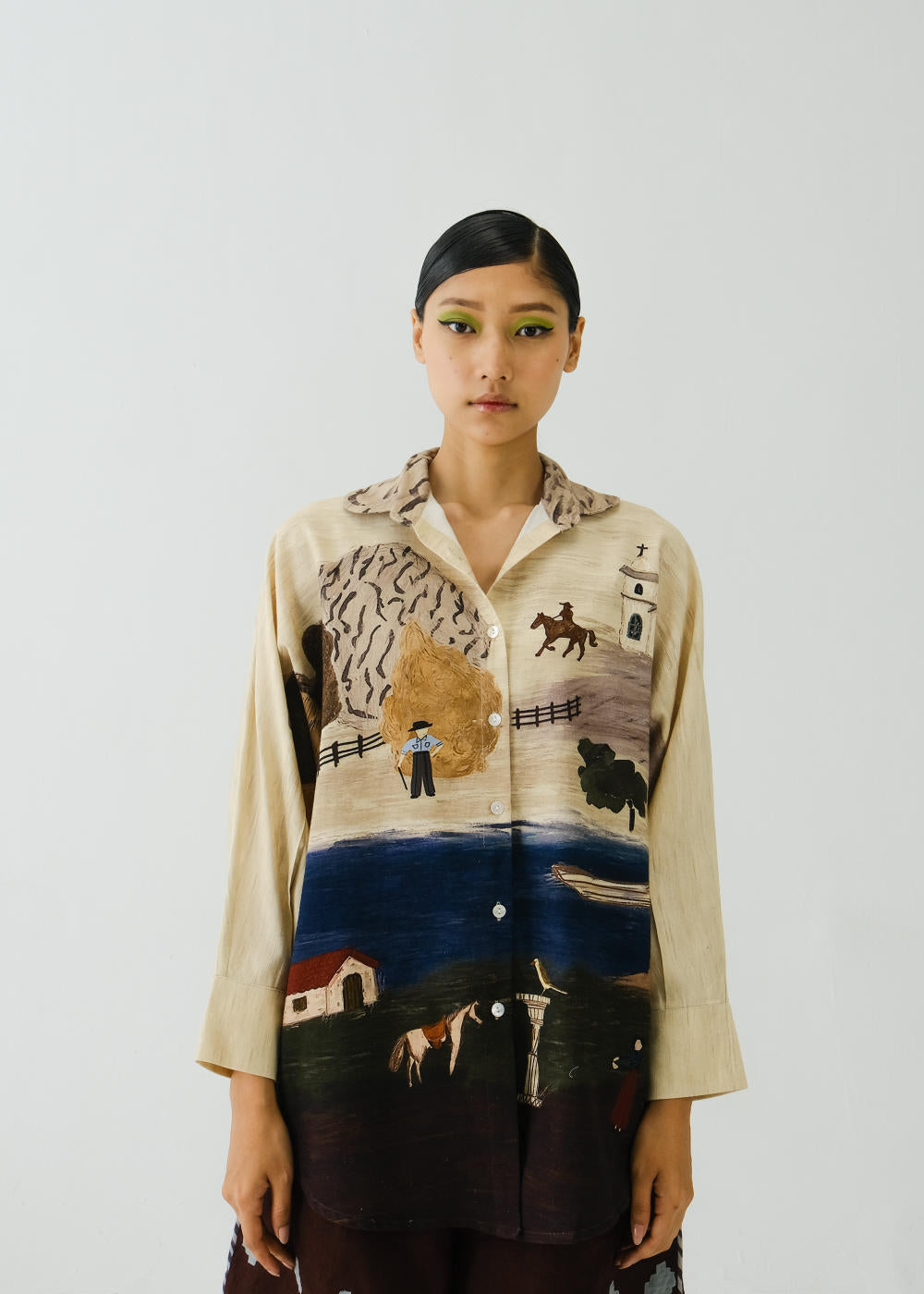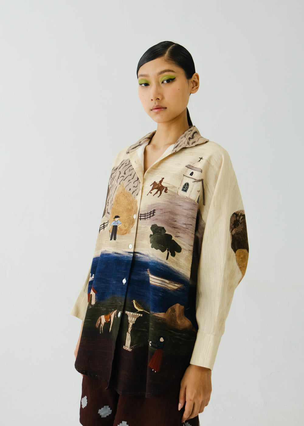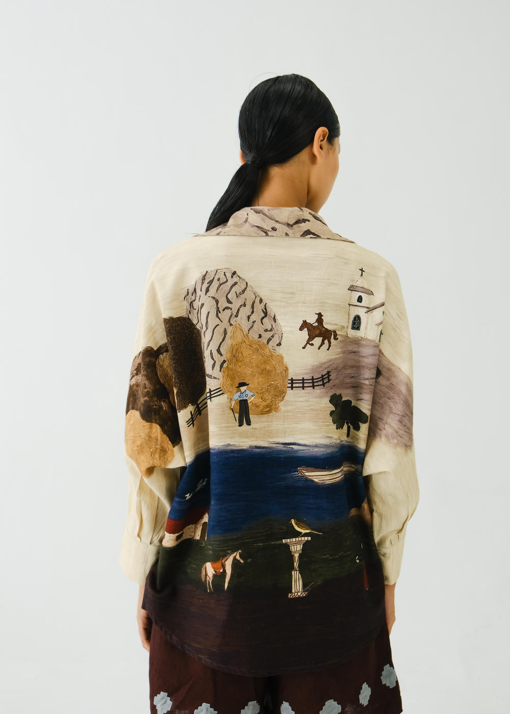 CORD blurs the line between art and attire in a way few labels dare to. Here, fabrics become canvases; illustrations—drawn by hand, steeped in imagination—flow across silhouettes that feel sculptural yet deeply wearable. Each piece has a texture of memory to it, as if it carries echoes of a past life, now reframed for a contemporary world.