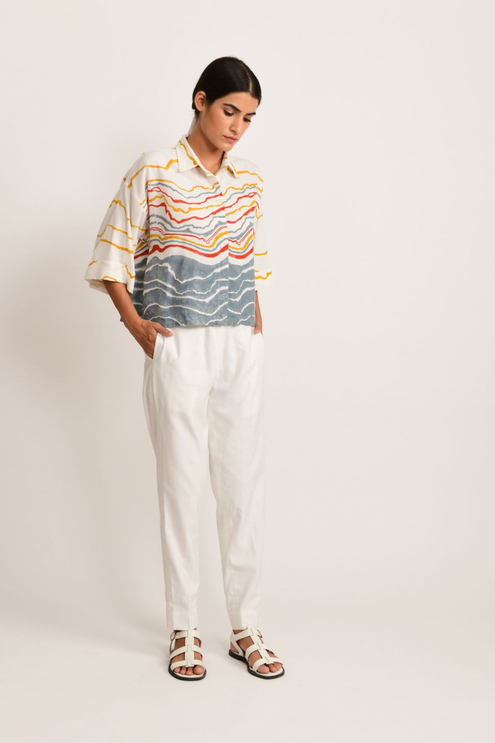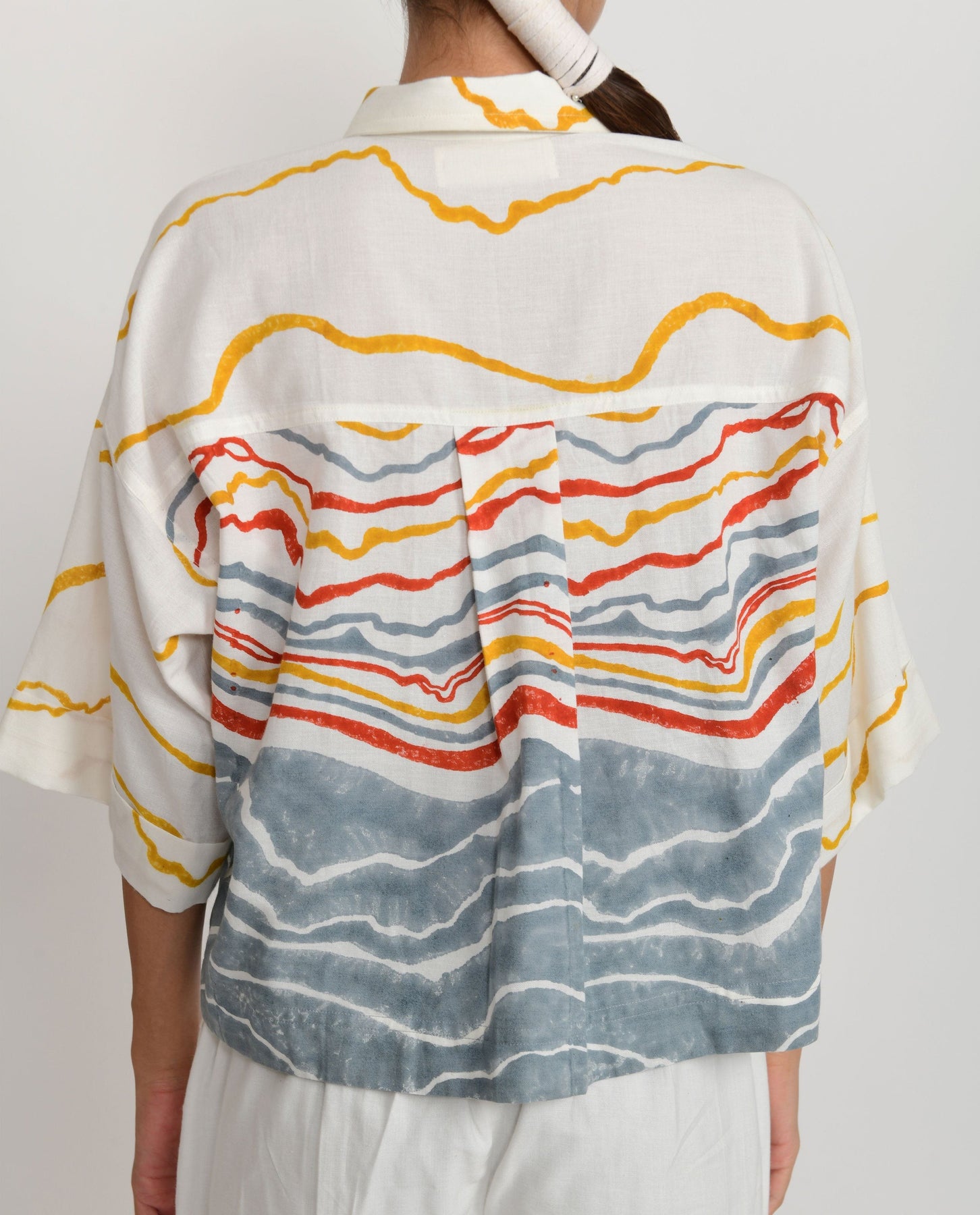 Hand spun indigenous cotton, blended with natural bamboo yarn & hand blocked to its beauty is perfect for summer and winter - an All season garment with a great fall.This short earth crested crop top with collar and front closure is good to go with white pants or your favourite denims.Length of top "20.5 inch
