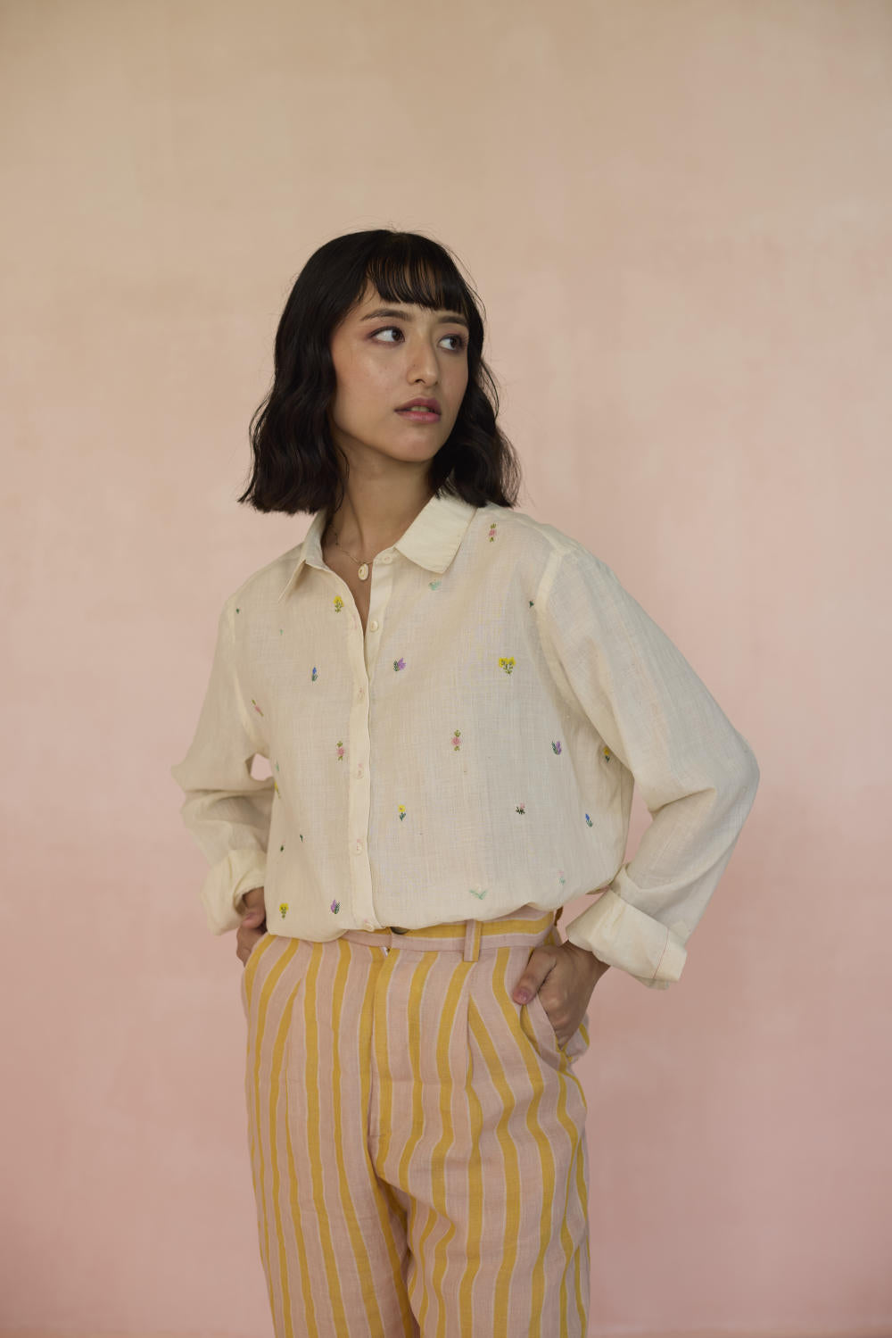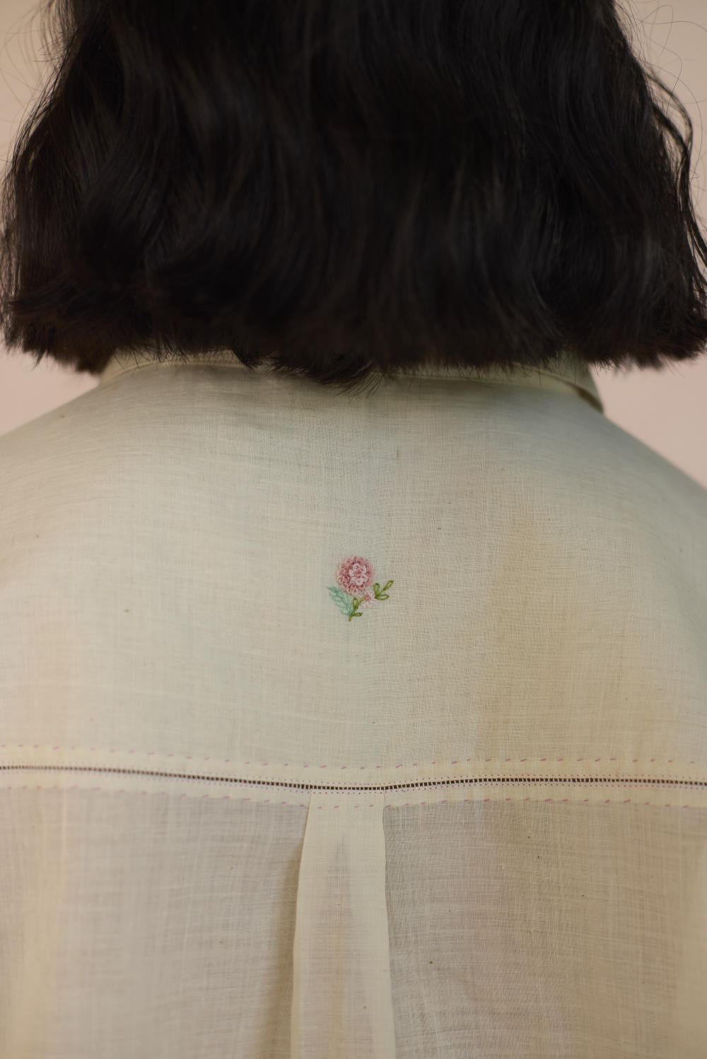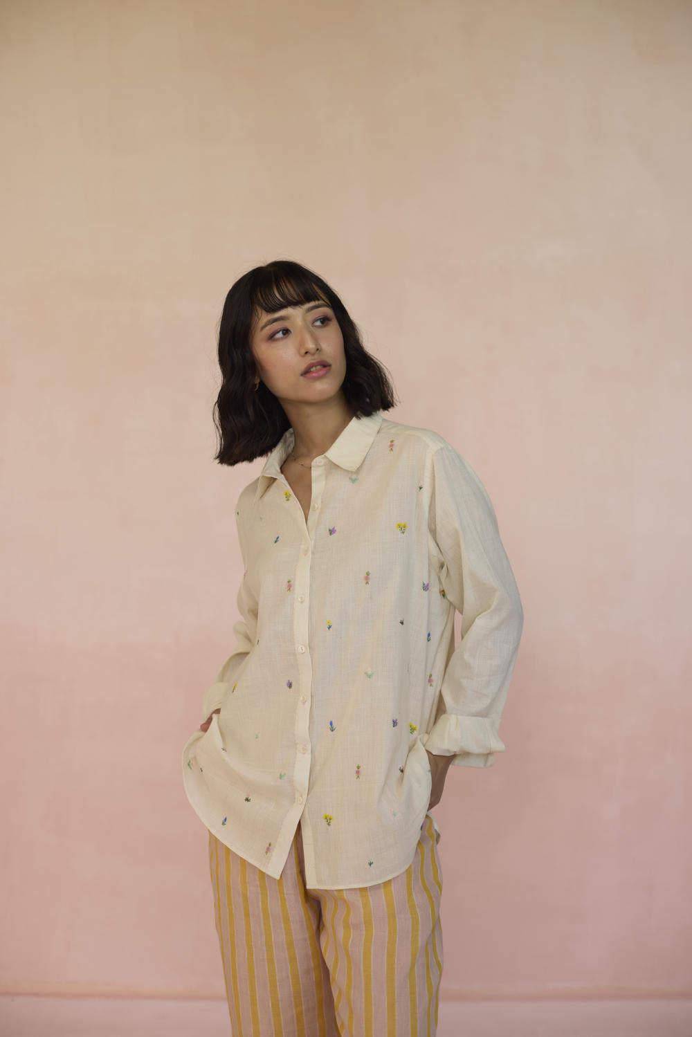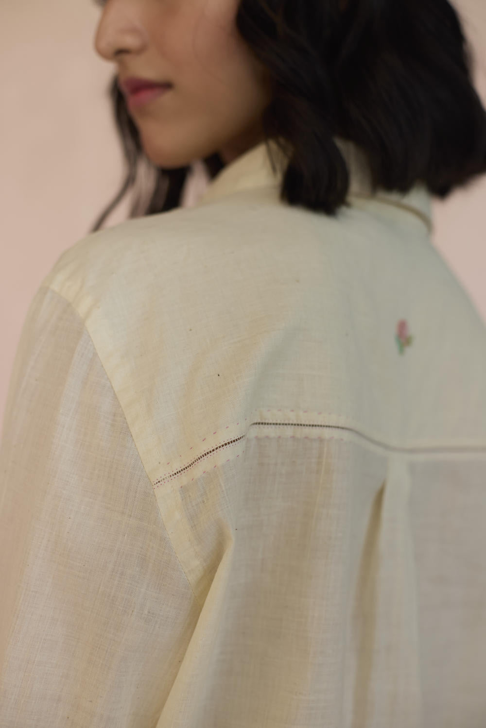 Our handwoven Ditsy cotton shirt is a perfect blend of traditional craftsmanship and elegance. The shirt features delicate hand-embroidery lending it a timeless appeal. Its natural texture and breathable quality, makes it an ideal choice for day time wear or an evening out. The shirt is made with 100% handspun, handwoven cotton that lends grace and form to the fabric. Hand-sewn shell buttons and hand-swen seams adds a touch of individuality. The soft, yet durable cotton drapes effortlessly, offering comfort without compromising on style. A perfect everyday wear making you stand out.
