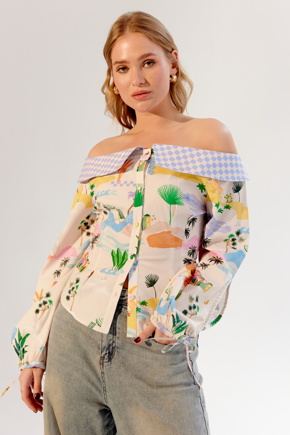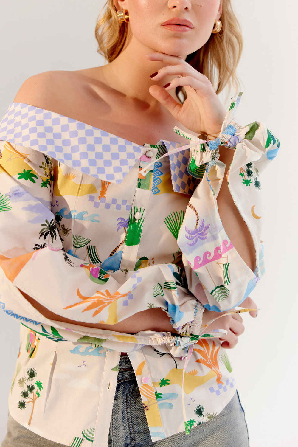 The Sage Shirt is a stylish off-shoulder design that exudes effortless charm. Available in two captivating variations—Boardgame and By the Sea—both feature vibrant placement prints on comfortable cotton elastane. The elasticated back ensures a snug yet relaxed fit, while the cut-out drawstring detail on the sleeves adds a playful, contemporary touch.