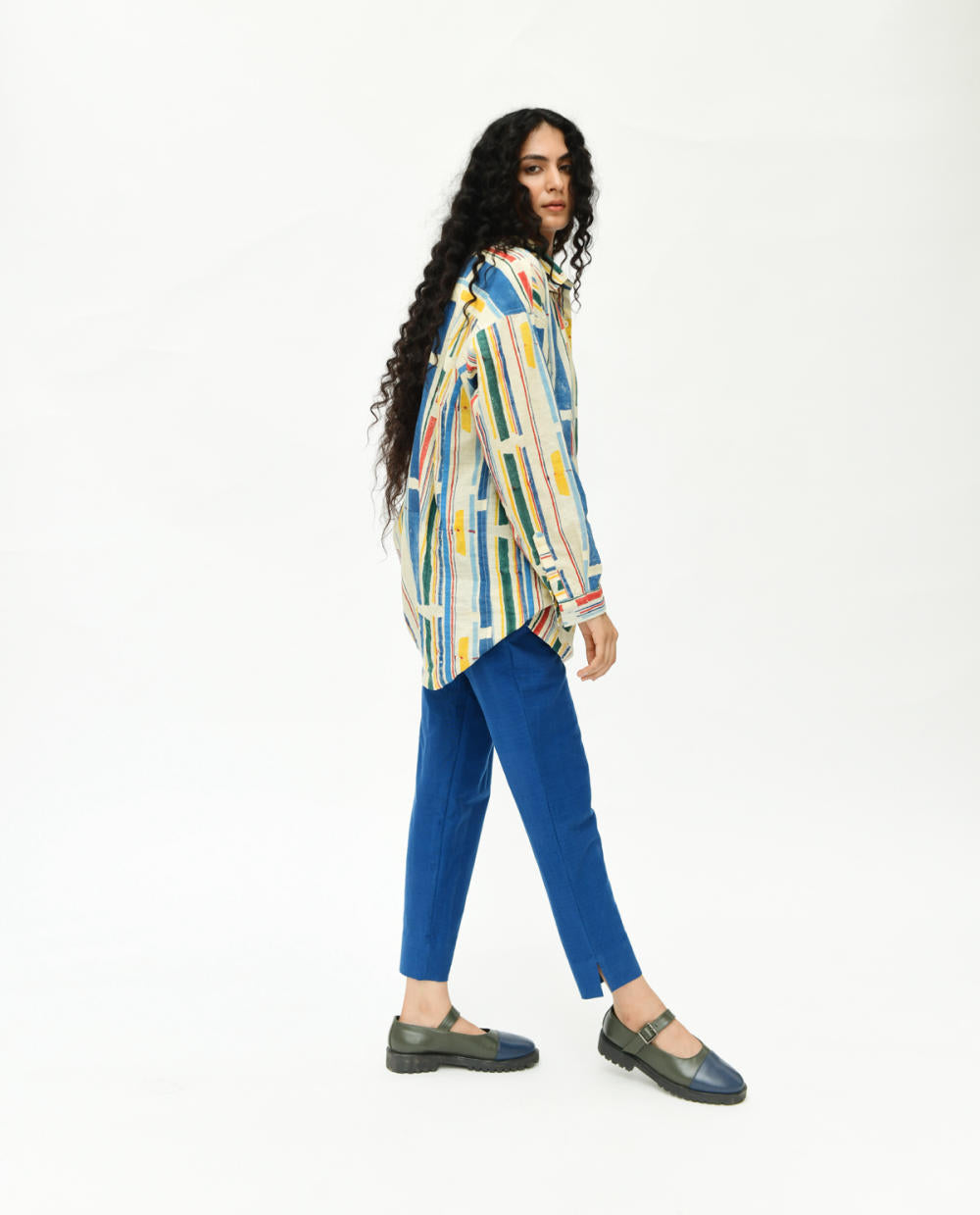 -Craft : Handblock printing. Off white base with multi colour stripe print