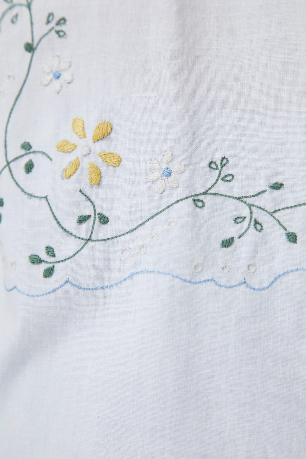 Hand embroidered by skilled craftsmen. Cuban collar shirt made in handspun and handwoven cotton. Short sleeves. Finished with vintage floral motifs embroidered by hand.