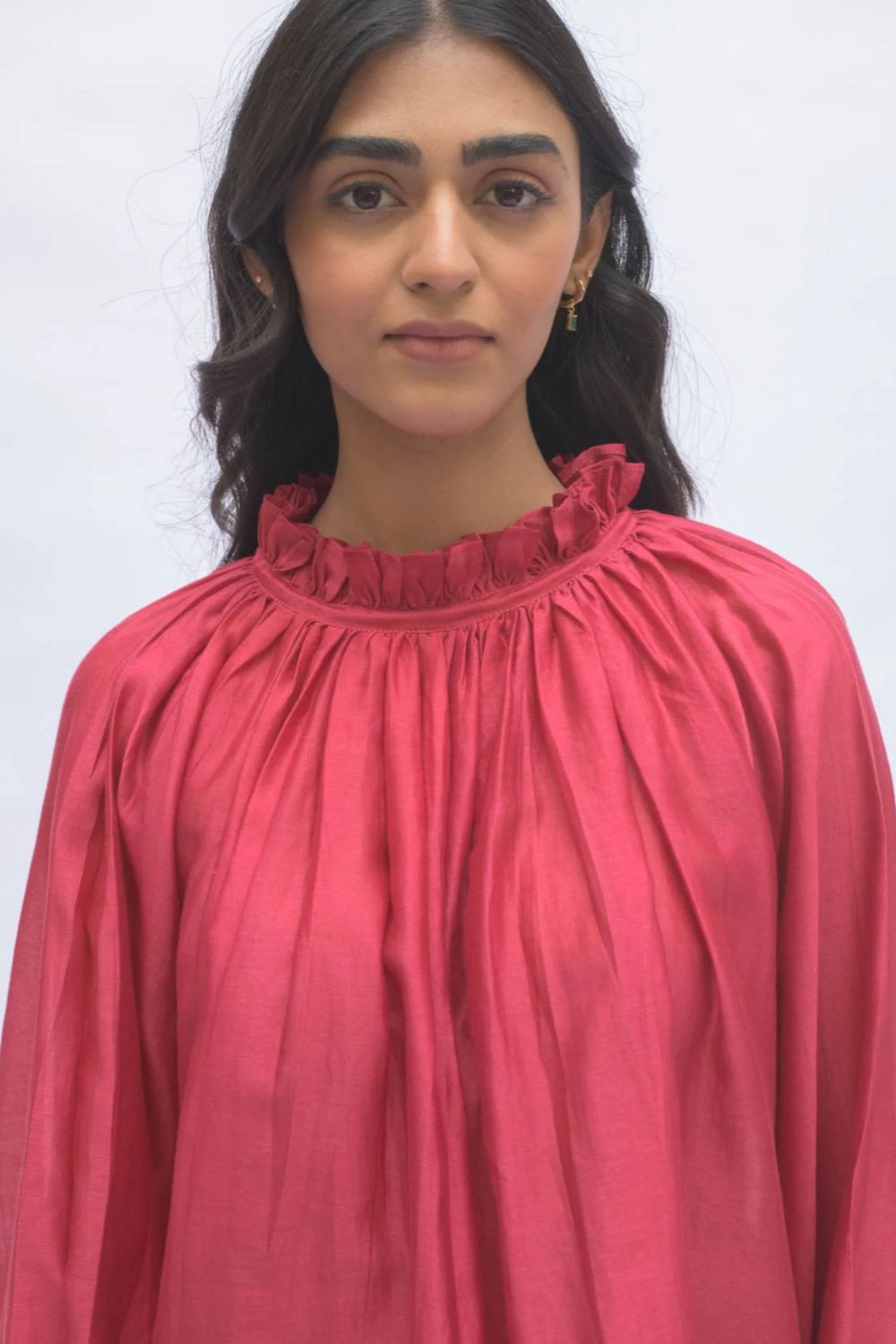 The silhouettes are simple but considered: relaxed cuts, thoughtful details, and fabrics that breathe — from handwoven cottons to delicately finished textiles rooted in Rajasthan’s craft culture. Colours stay close to the earth: muted florals, soft neutrals, and tones that age gracefully rather than fall out of season.