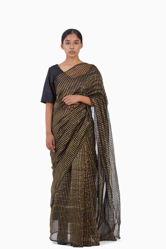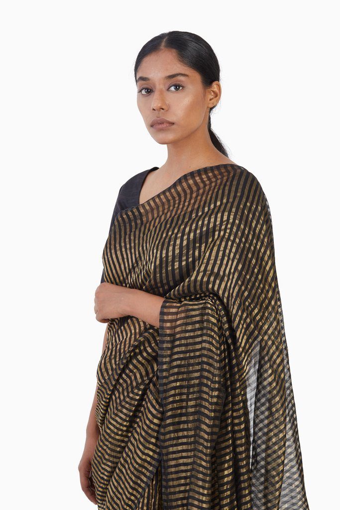 "Handwoven in fine Silk Cotton & Zari on a traditional loom in central India. the saree is light weight making it easy to carry. It can be worn throughout the year. - Light Weight - Blouse not sold with the saree - Ethically Made - An Akaaro classic