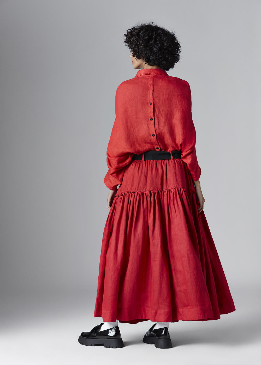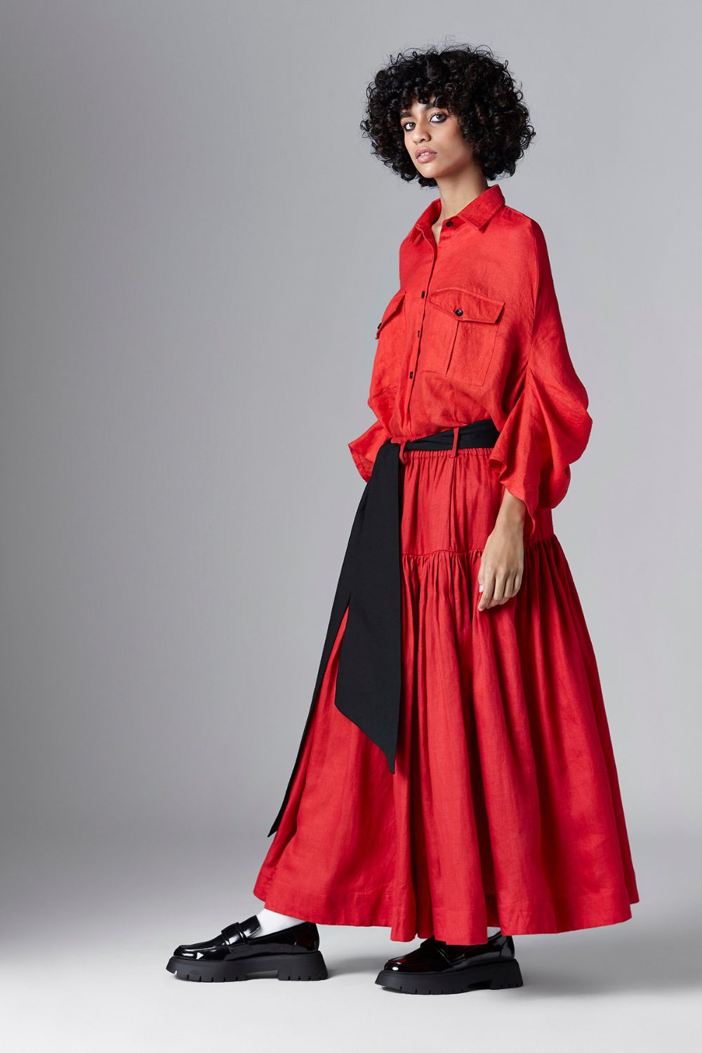 GATHERED MIDI SKIRT WITH WIDE TRANGULAR BELT