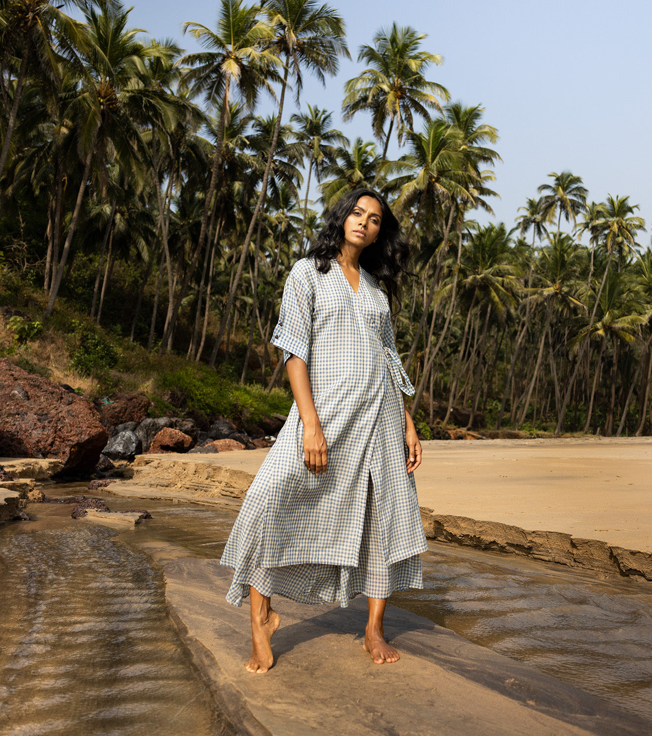 Each piece is grounded in India’s textile heritage yet designed for a woman who moves easily between cultures and climates. The brand’s commitment to homegrown cotton, artisanal processes, and clean, breathable shapes has made these garments not just beautiful, but deeply wearable.