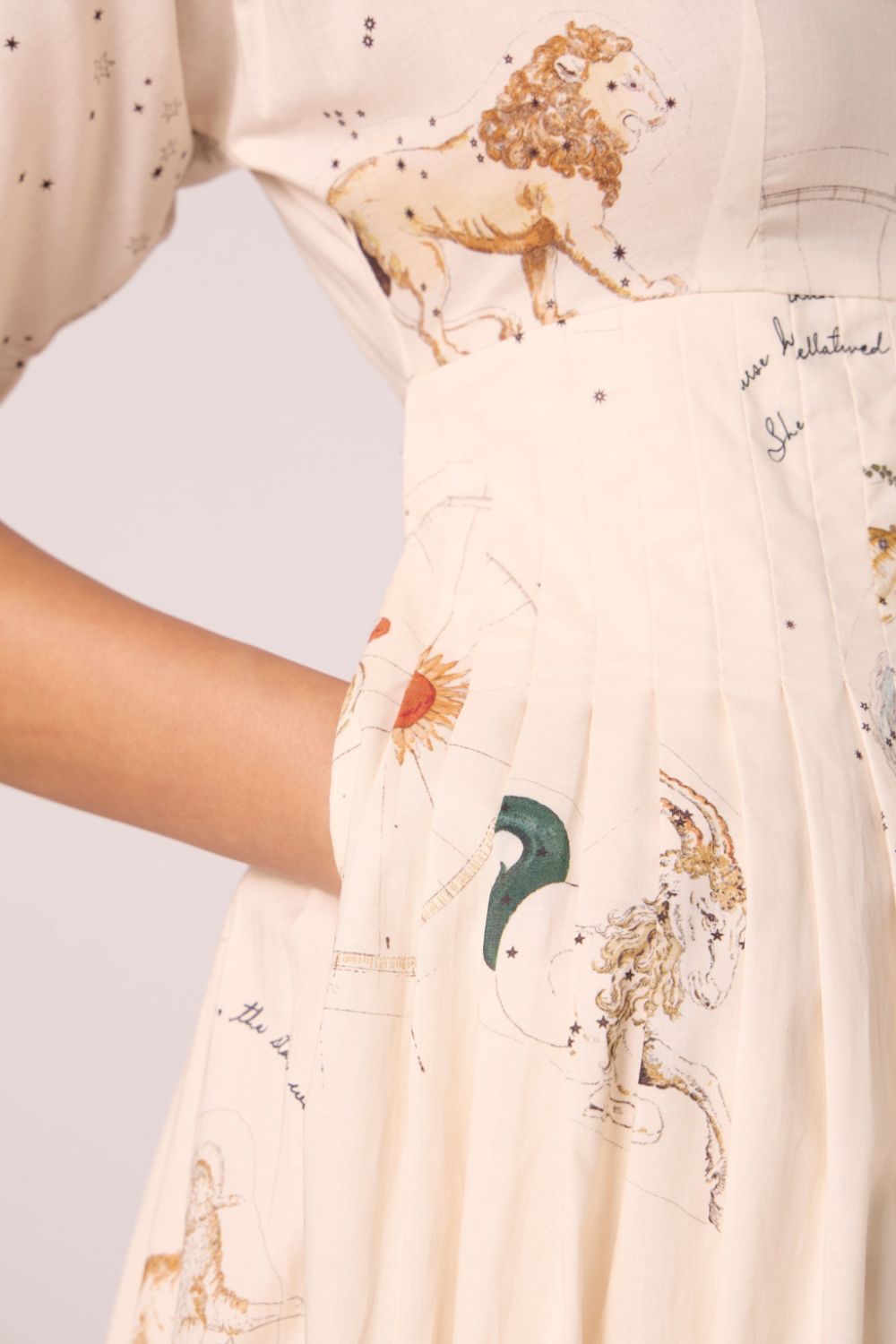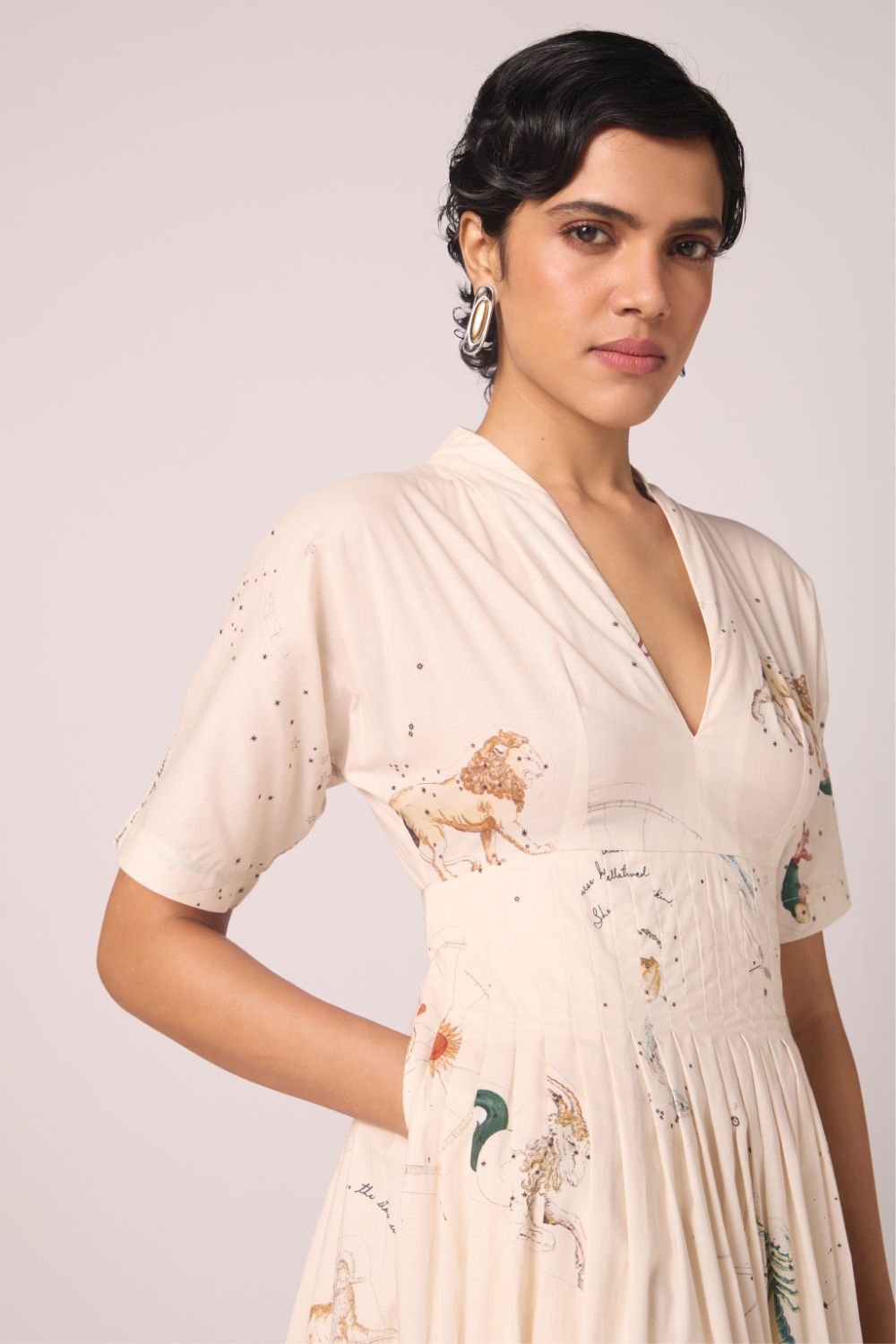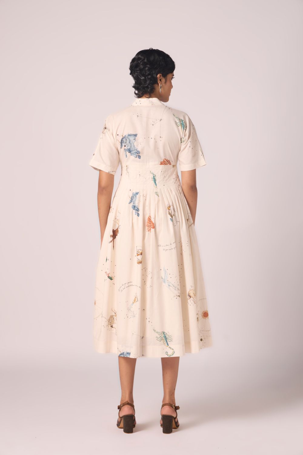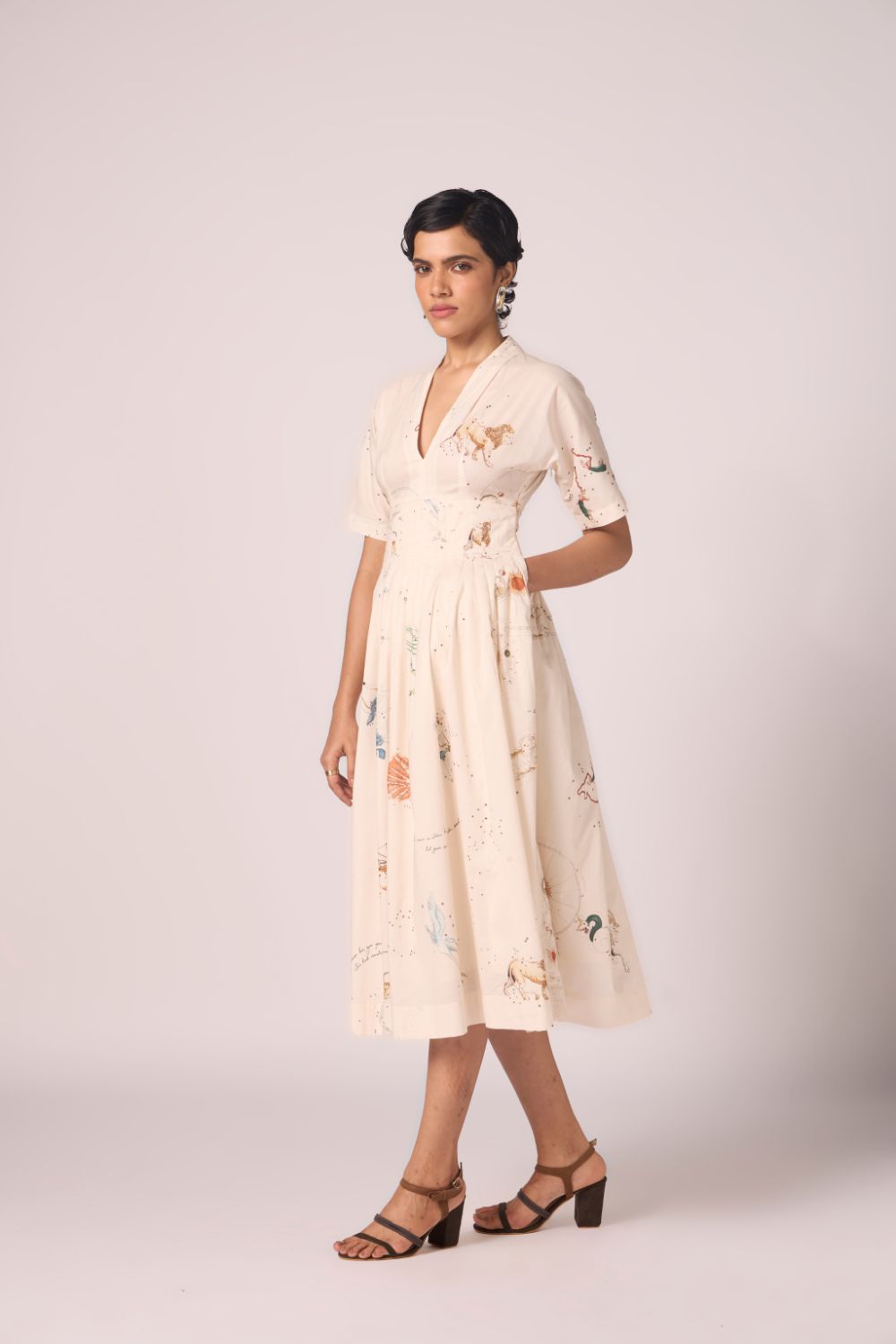 A graceful midi dress in our signature print, crafted from lush cotton cambric. Thoughtful pleating at the collar and waistline lends gentle structure, while relaxed sleeves and a flowing silhouette keep the mood effortlessly chic.