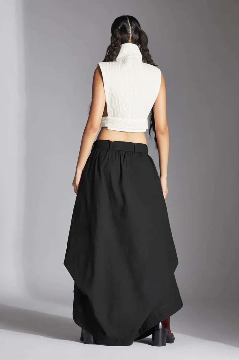 Aven is a decontructed skirt with elasticated waistband, side pockets and self belt