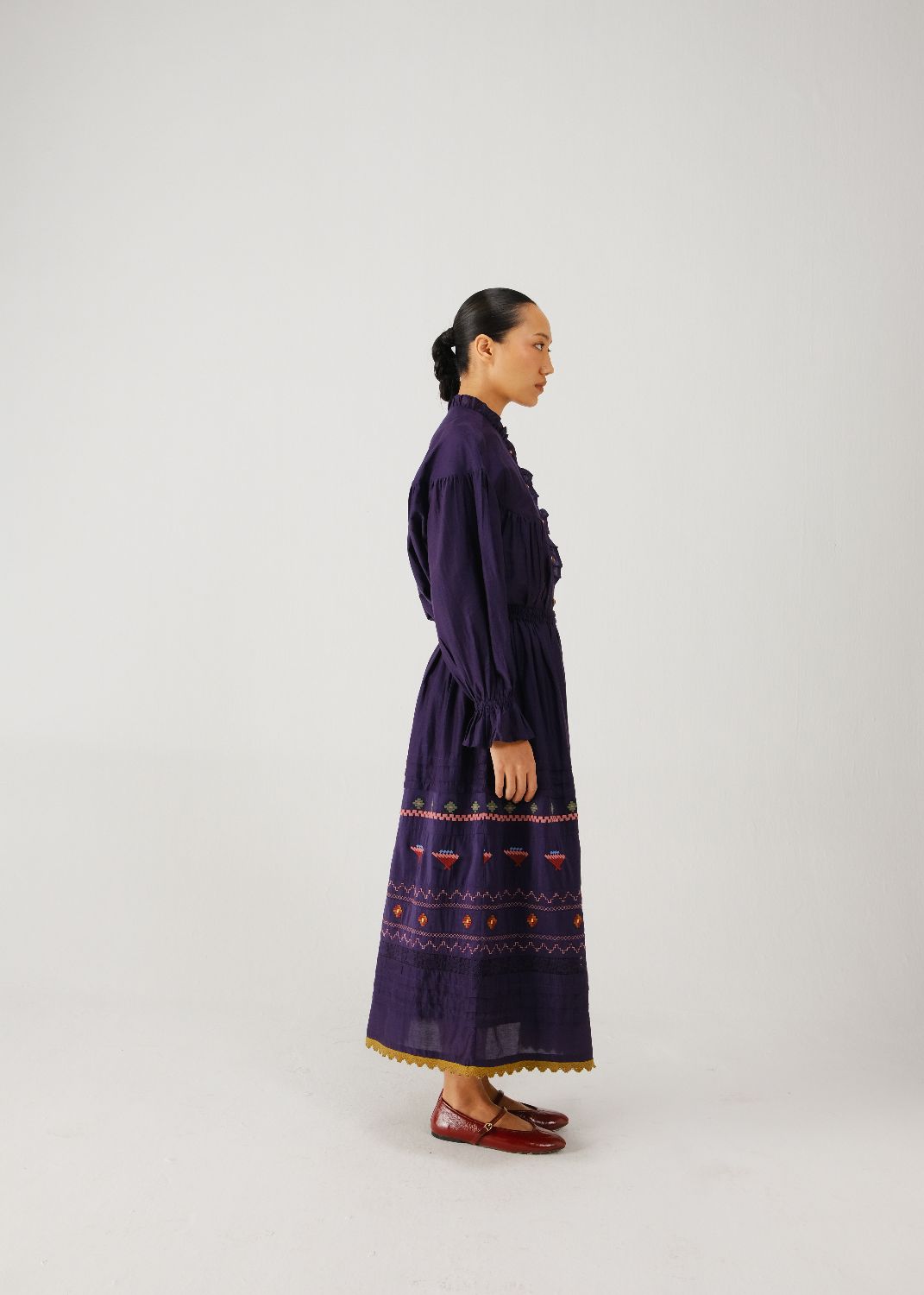 What anchors the brand is its reverence for technique. Smocking, lacework, appliqué—the kind of hand-labour that belongs to heirloom trunks and craft histories—reappear with a fresh, expressive clarity. The garments feel almost cinematic: nostalgic without being dated, whimsical without being naive, artistic without ever losing function. It’s the rare kind of design that feels both intimate and extraordinary.