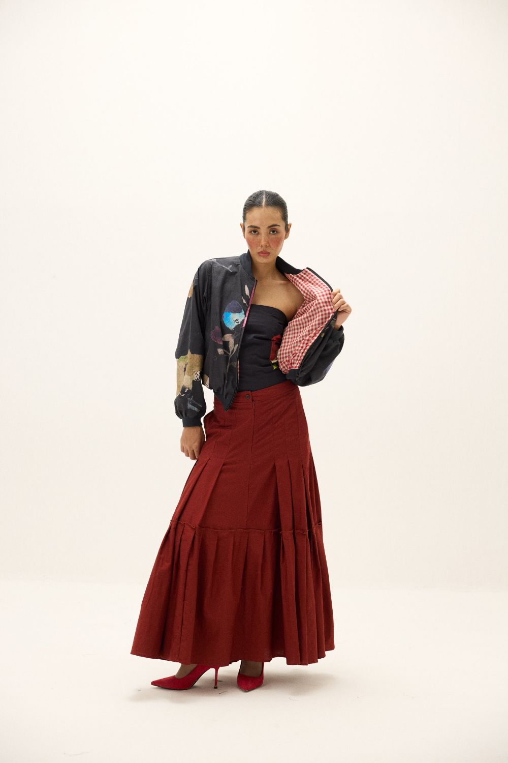 A redefined classic - the Irelune Bomber is crafted in soft cotton oxford with an floral hand-painted multi-coloured print over a charcoal base. Designed with a front zip closure, ribbed cuffs, and a relaxed fit, it merges comfort with a statement edge.