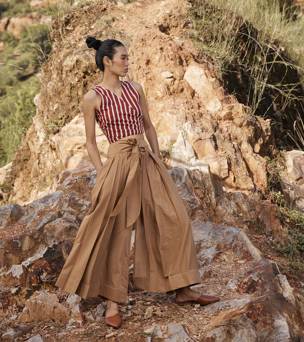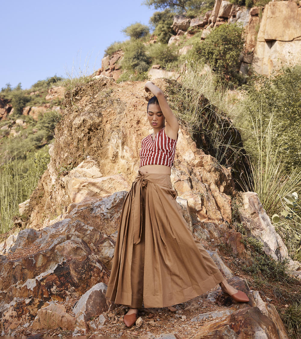 Each piece is grounded in India’s textile heritage yet designed for a woman who moves easily between cultures and climates. The brand’s commitment to homegrown cotton, artisanal processes, and clean, breathable shapes has made these garments not just beautiful, but deeply wearable.