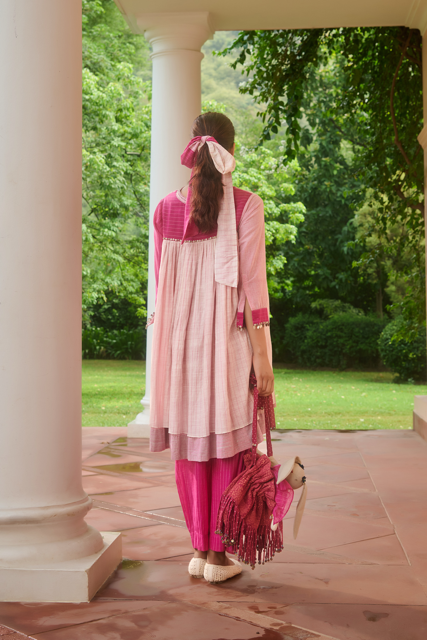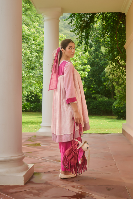 What sets Swatti Kapoor apart is the way she treats textiles as living beings — each with its own temperament, rhythm, and voice. Her garments don’t impose; they evolve. They drape the way water slips over stone. They hold the kind of ease that comes only from deep respect for material and maker.
