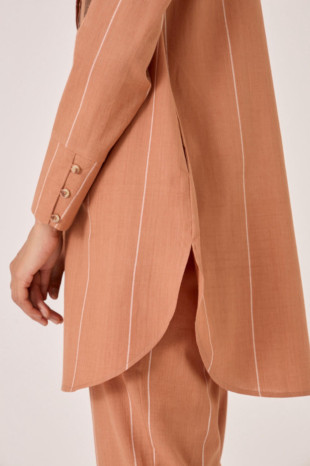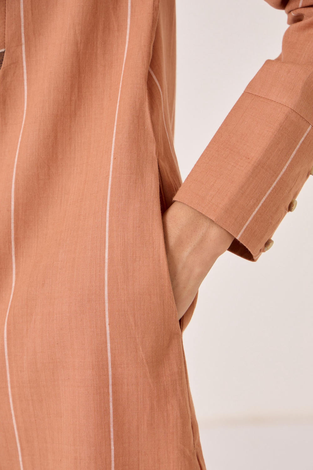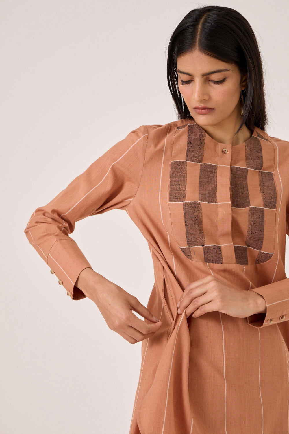 This garment is crafted from jamdani and handloom cotton, woven in Bengal.