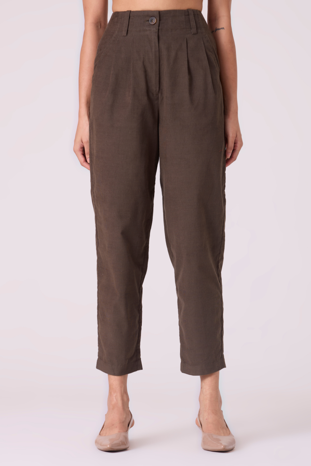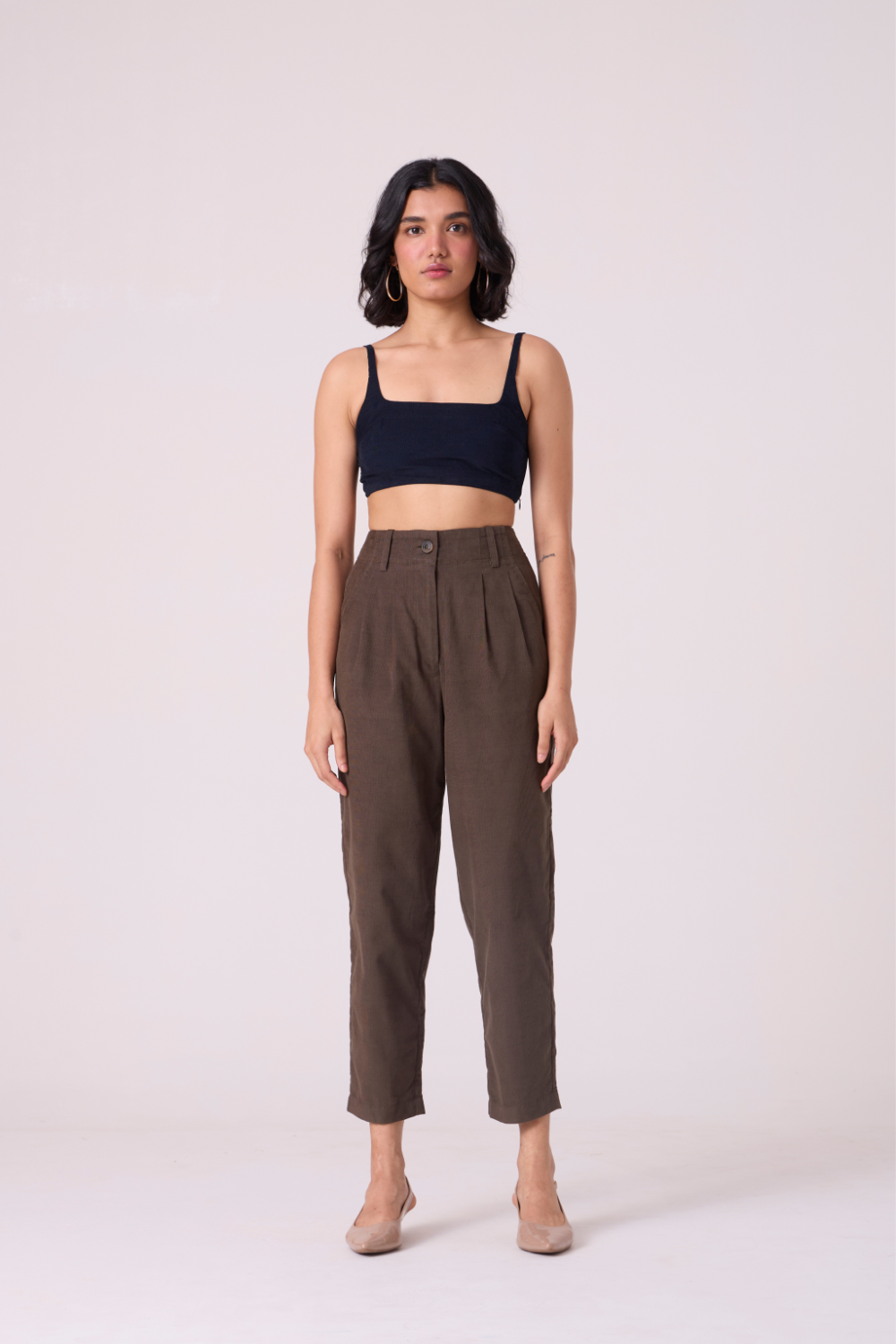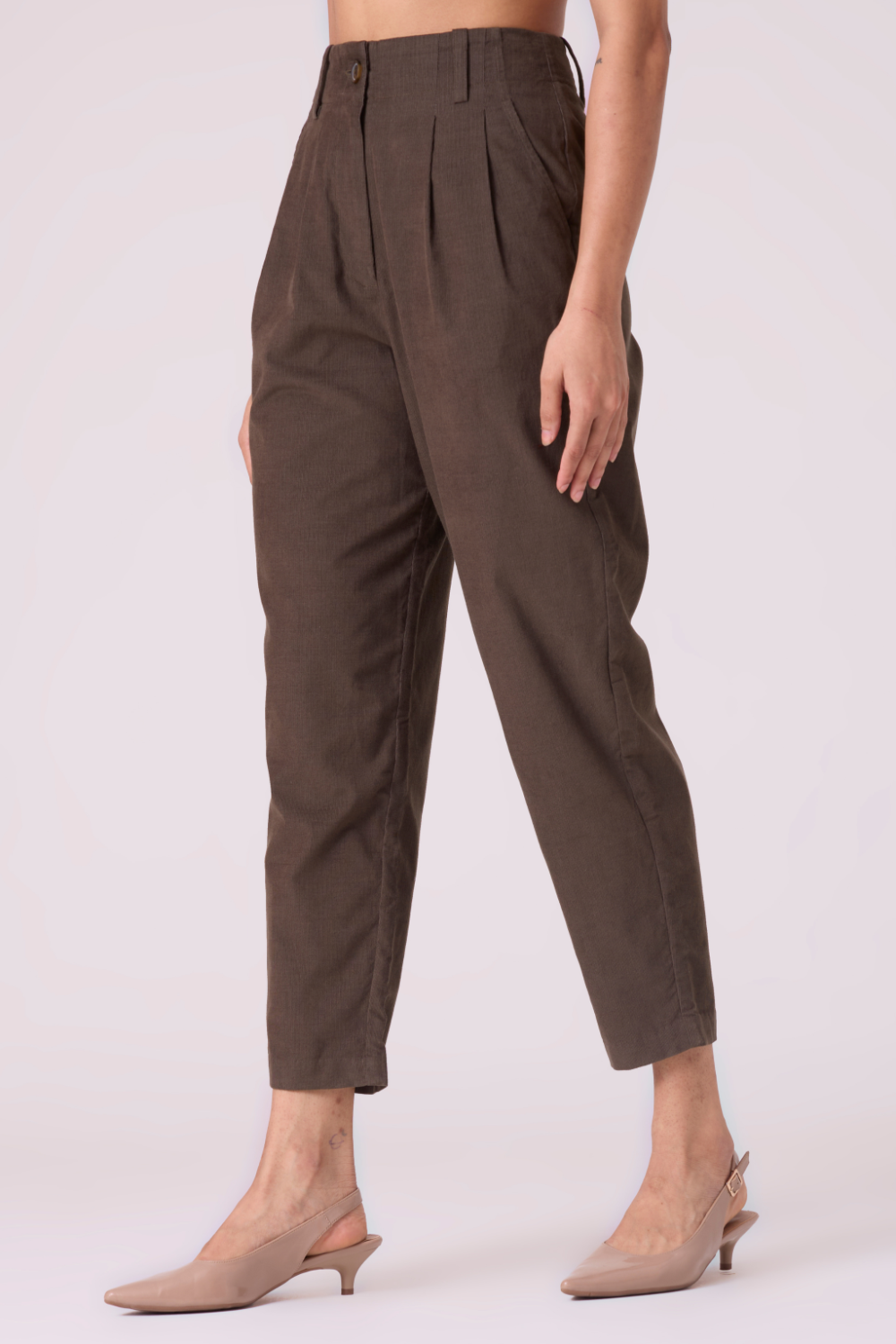 High-rise trousers with a clean, tapered line. Double pleats introduce ease without disturbing the sharpness of the silhouette