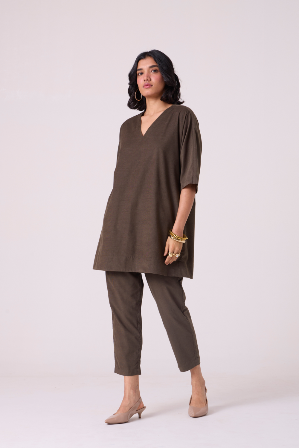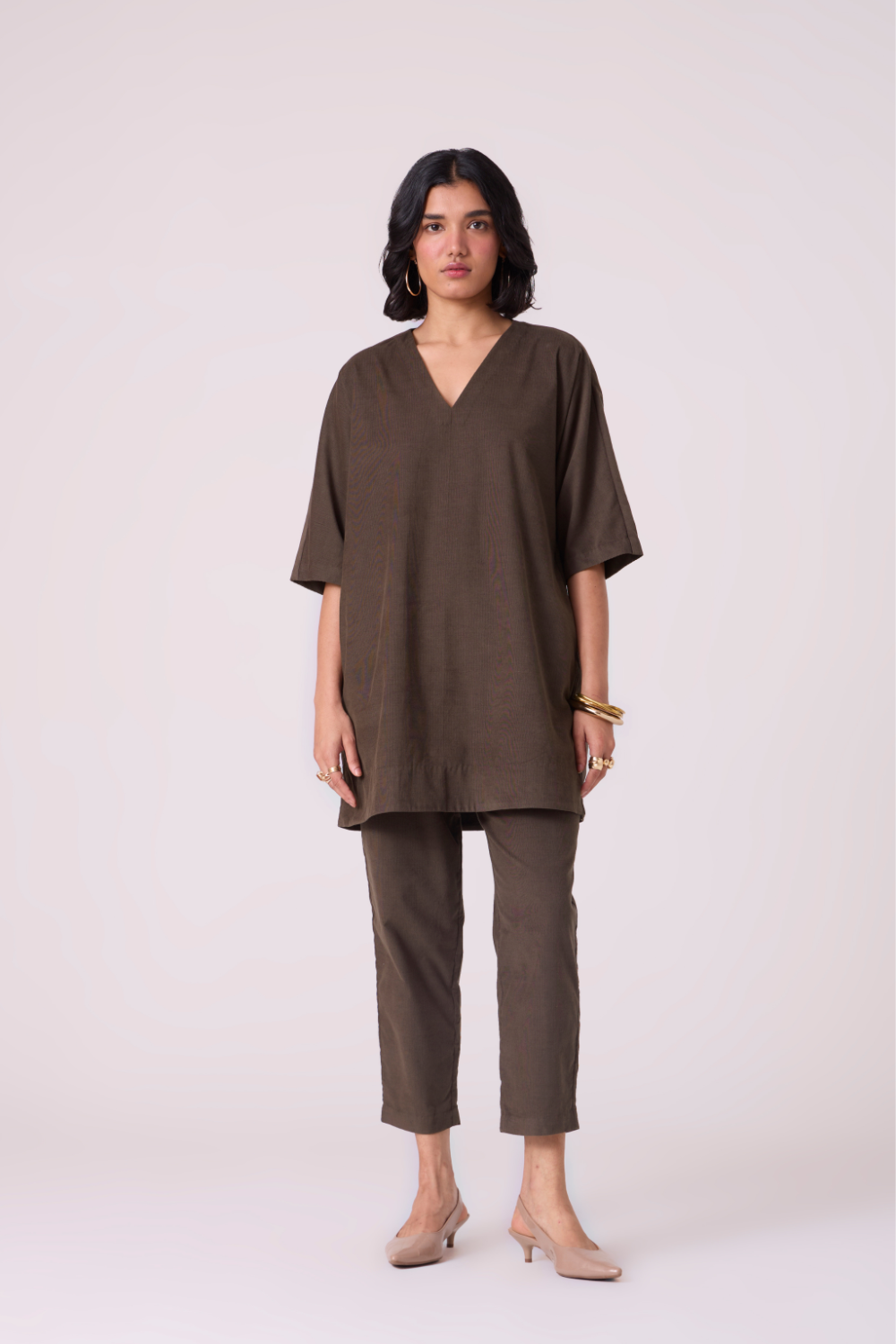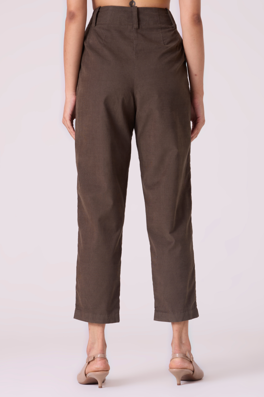 High-rise trousers with a clean, tapered line. Double pleats introduce ease without disturbing the sharpness of the silhouette