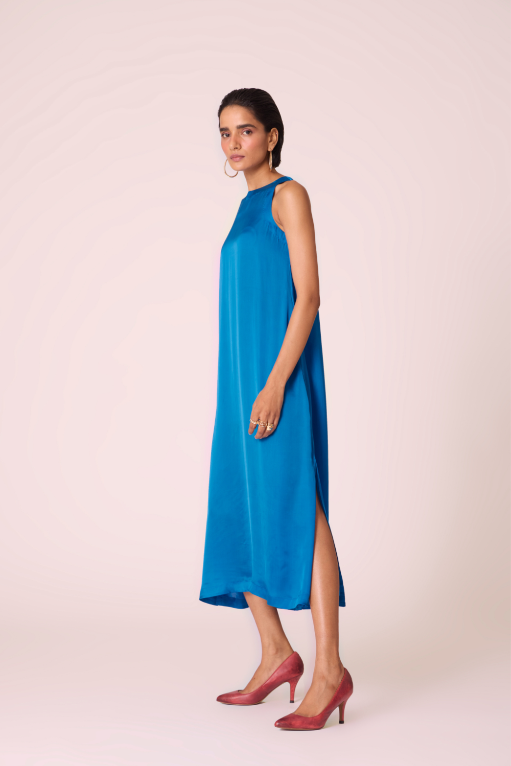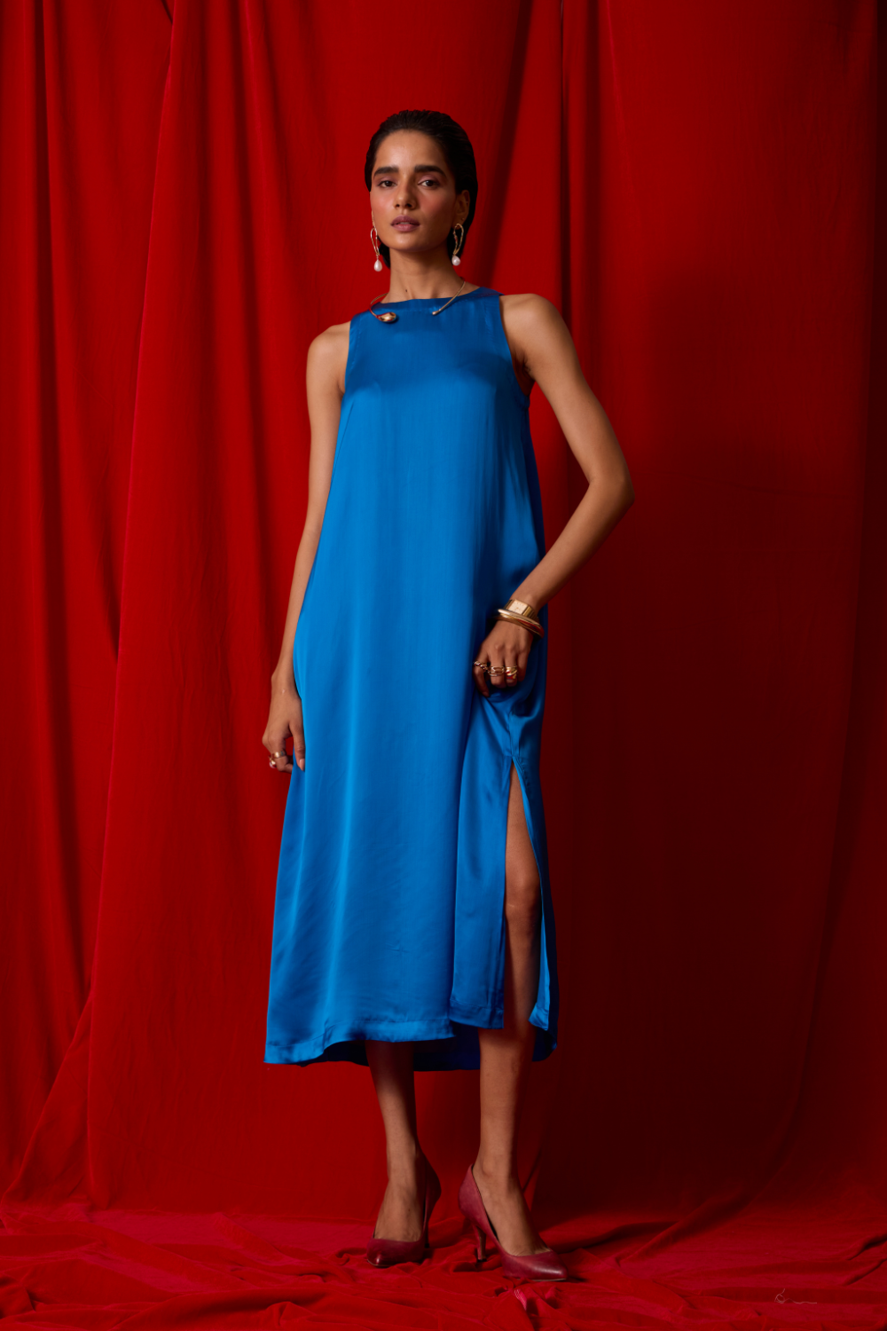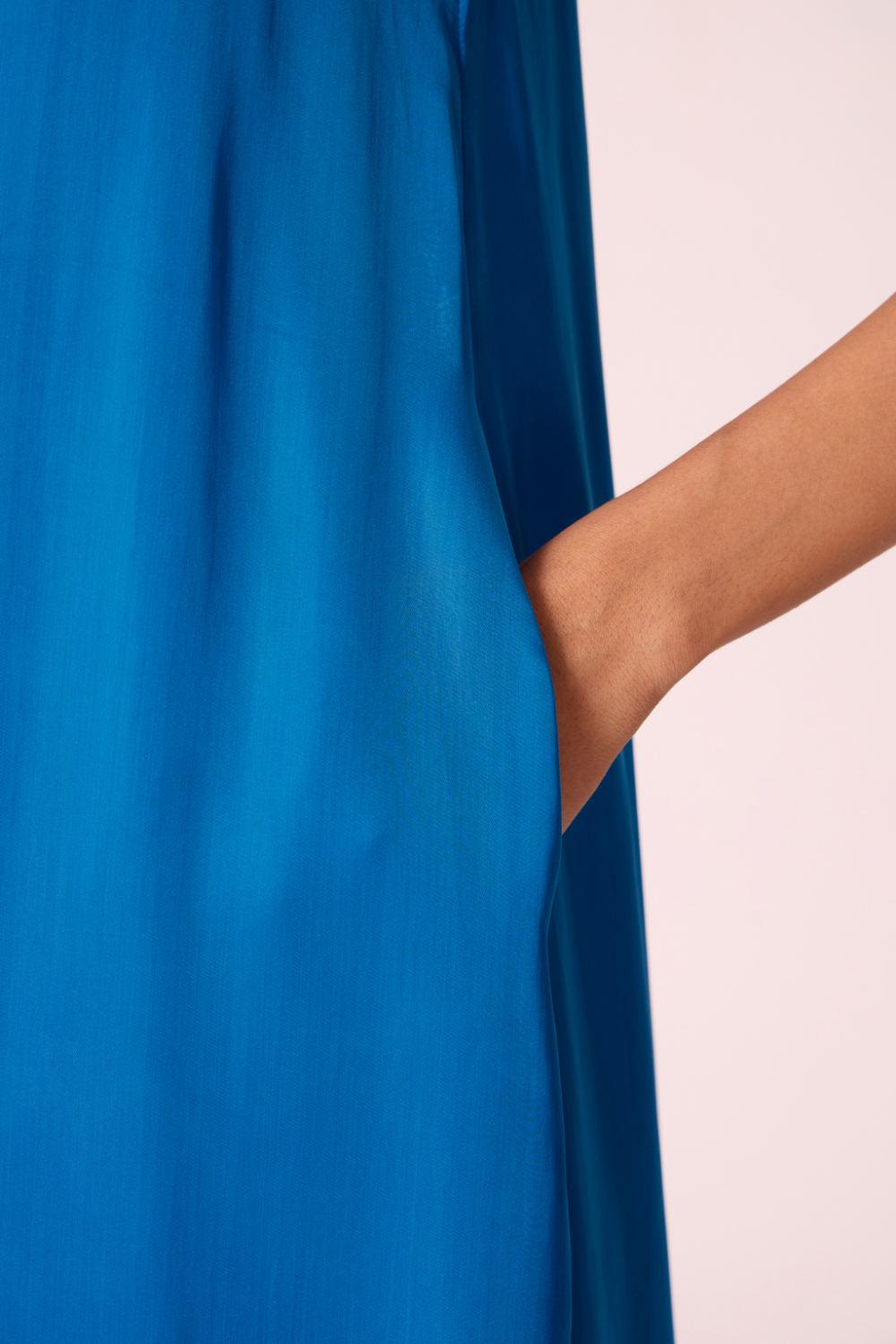 A fluid fabric allows the Pippa dress to define the mood of the hour. Modern cutaway shoulders and composed neckline elongate the body. Side slits and a concealed back placket bring quiet practicality to an understated piece.