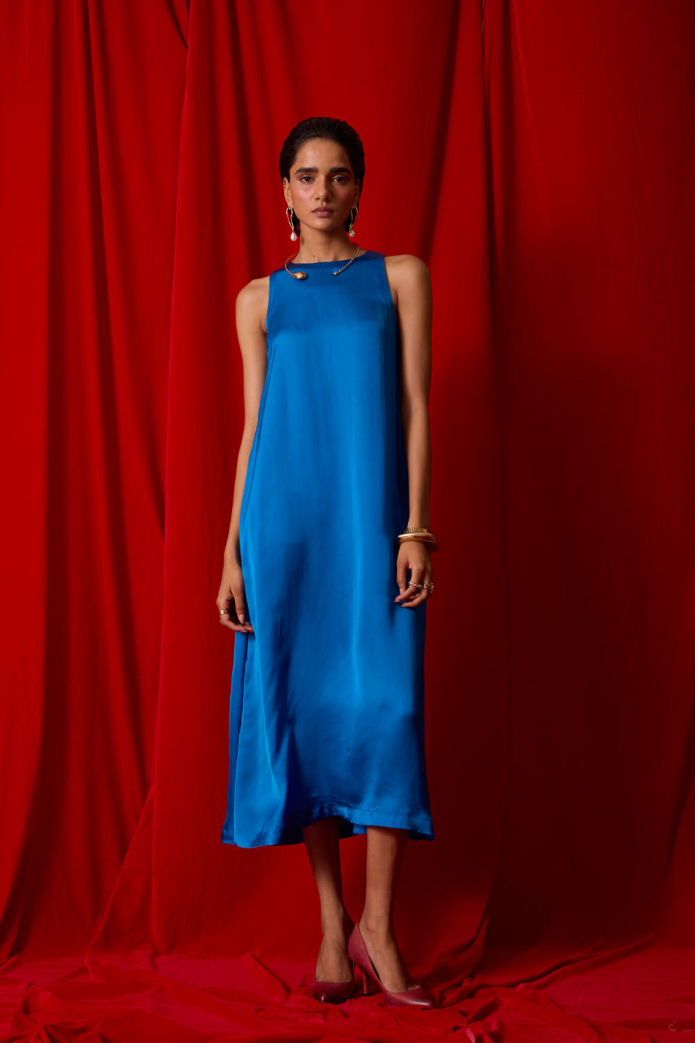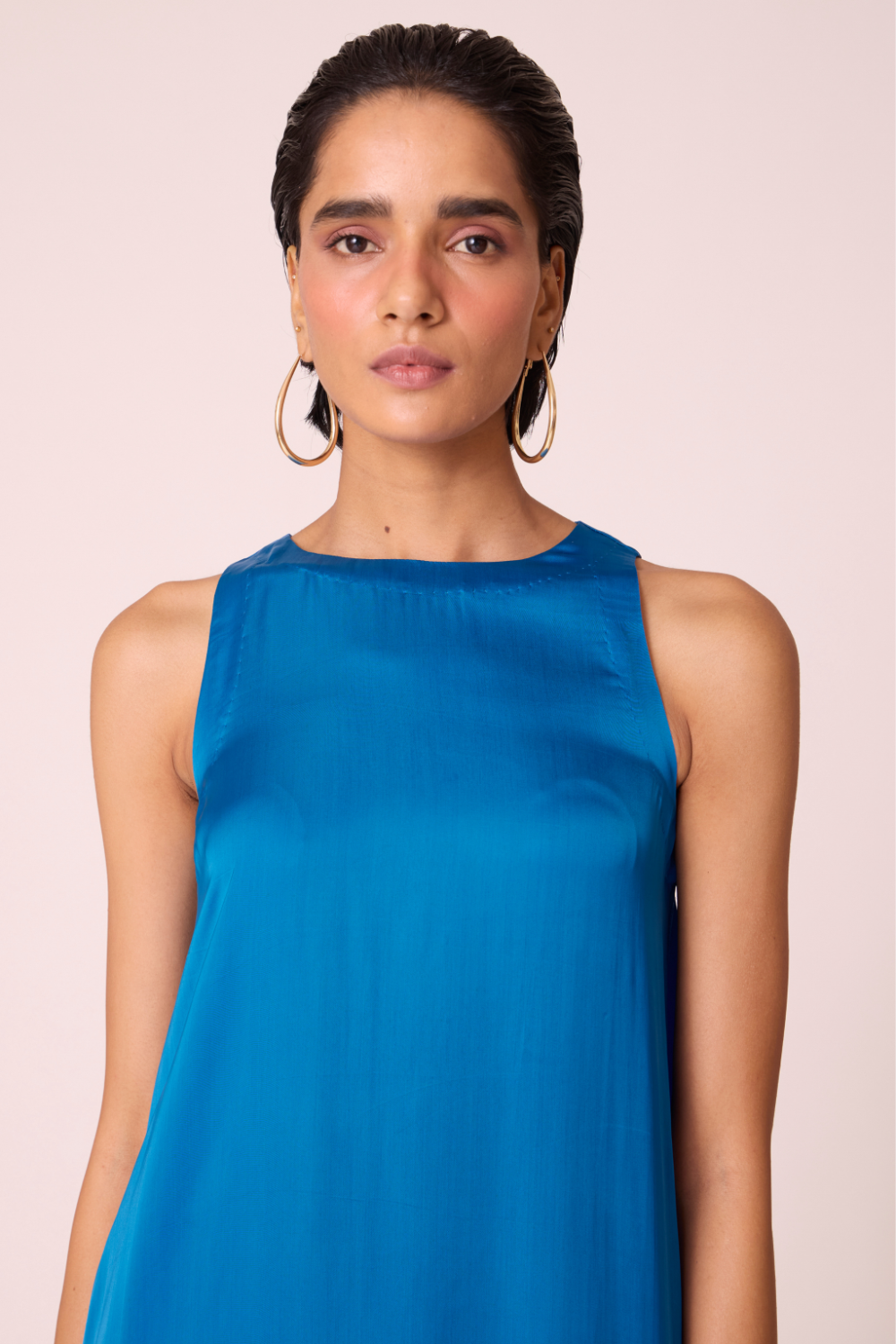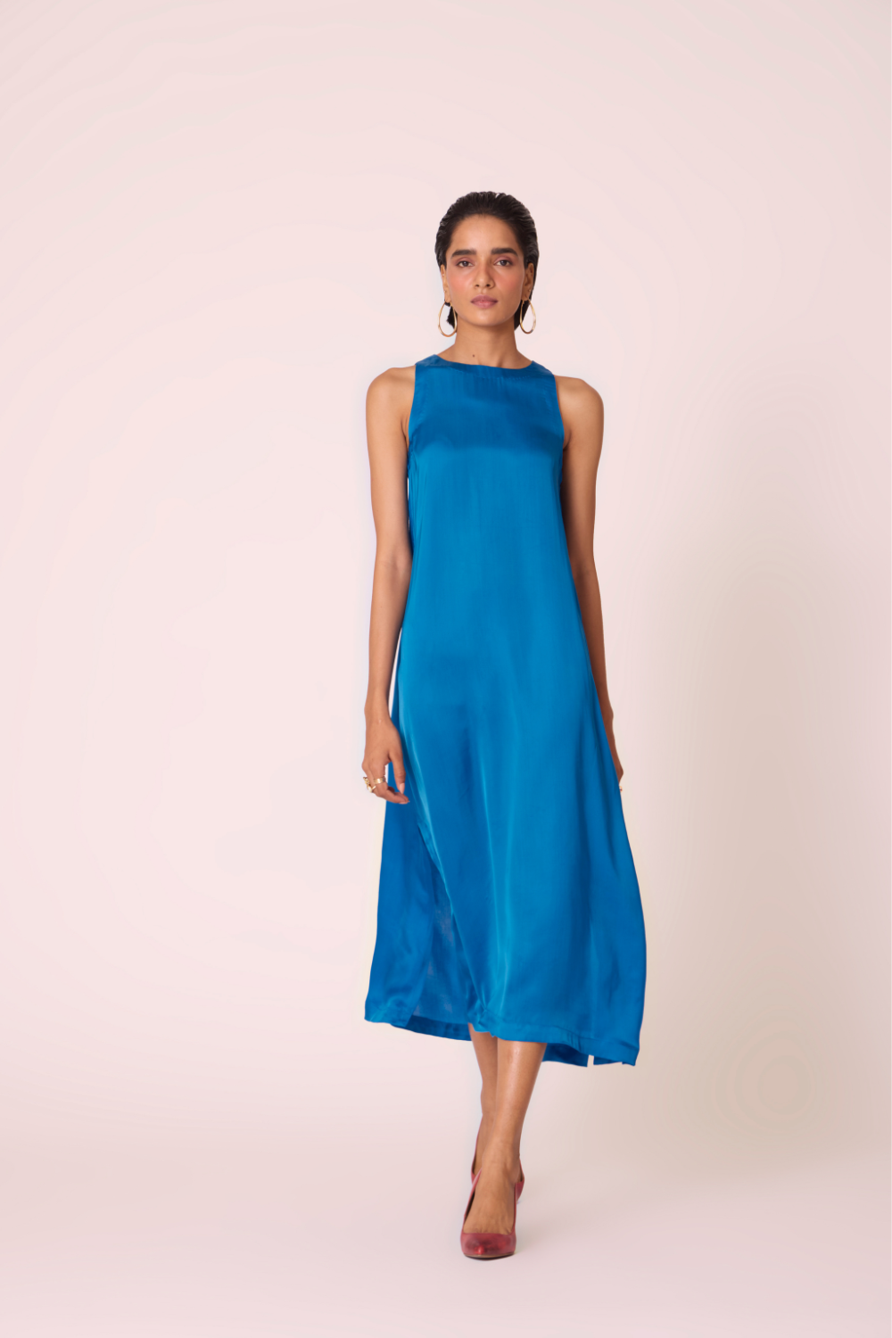 A fluid fabric allows the Pippa dress to define the mood of the hour. Modern cutaway shoulders and composed neckline elongate the body. Side slits and a concealed back placket bring quiet practicality to an understated piece.