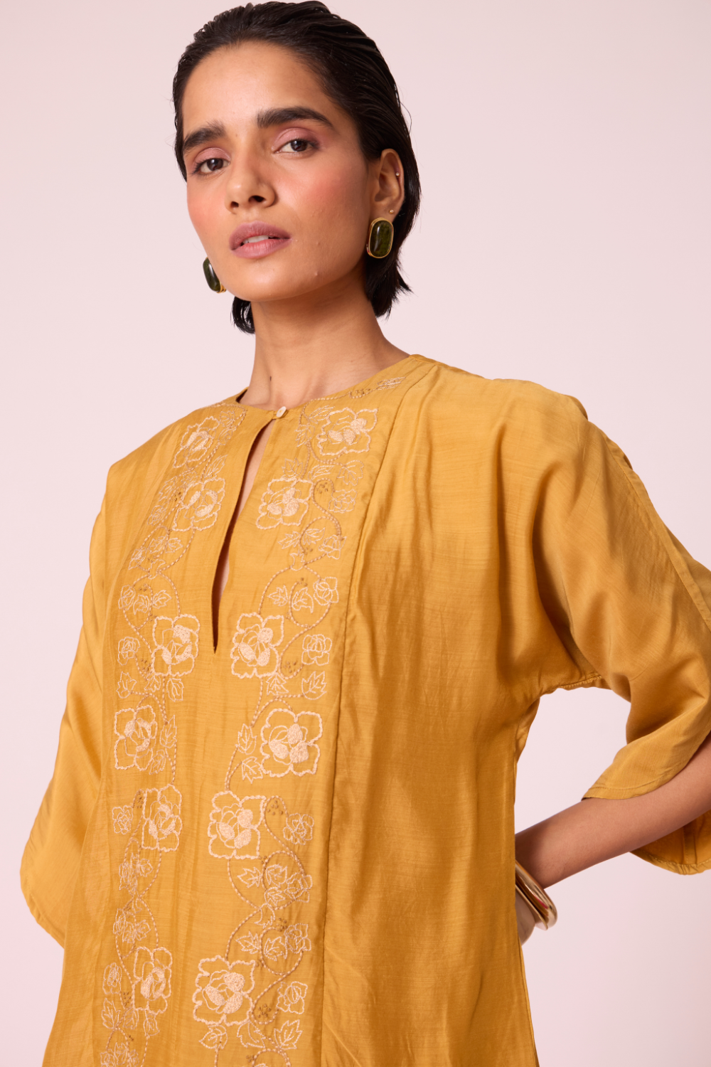 - Keyhole neckline with a hand-embroidered panel, crafted in-house