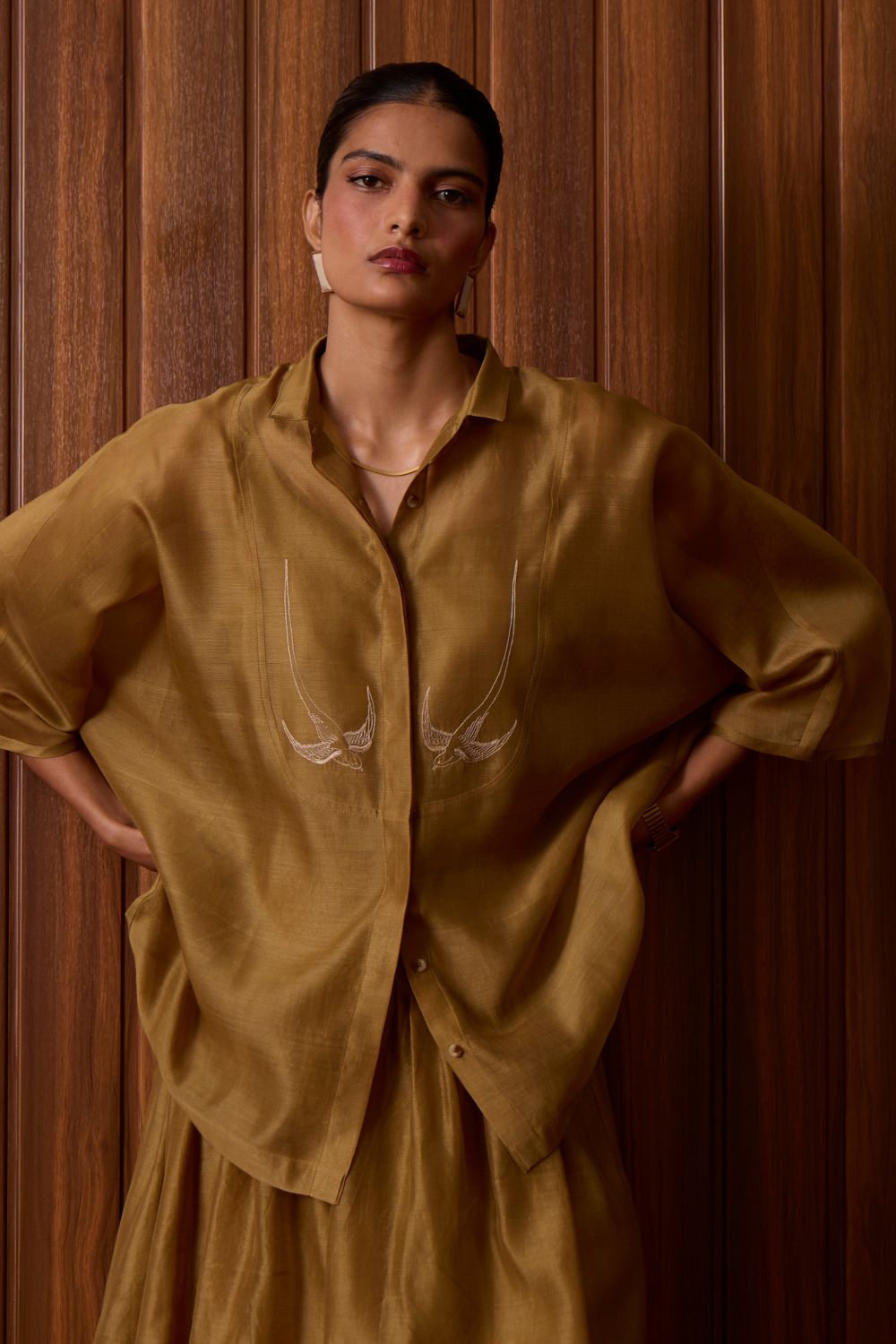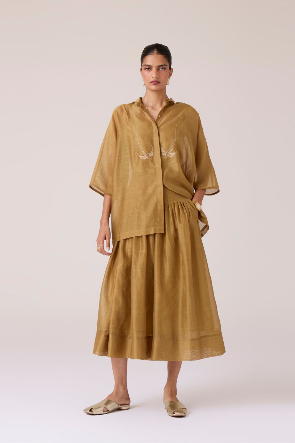 - Embroidered statement yoke crafted by hand