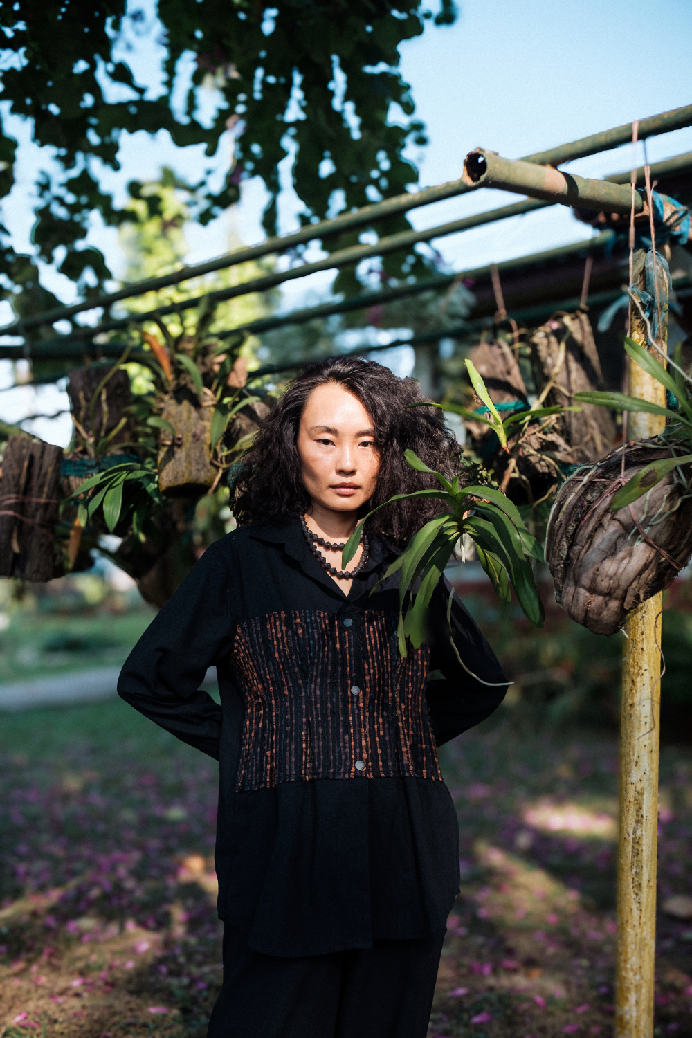 Charmee’s work doesn’t chase seasonal novelty. Instead, she builds garments through the lens of regenerative thinking: plant-based fibres, non-toxic dyes, biodegradable materials, conscious pattern-making, and silhouettes designed to circulate, not accumulate. Every piece begins with the question, “How lightly can we live?”