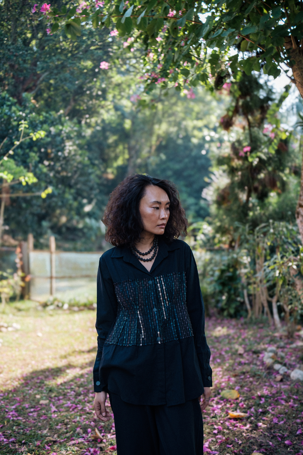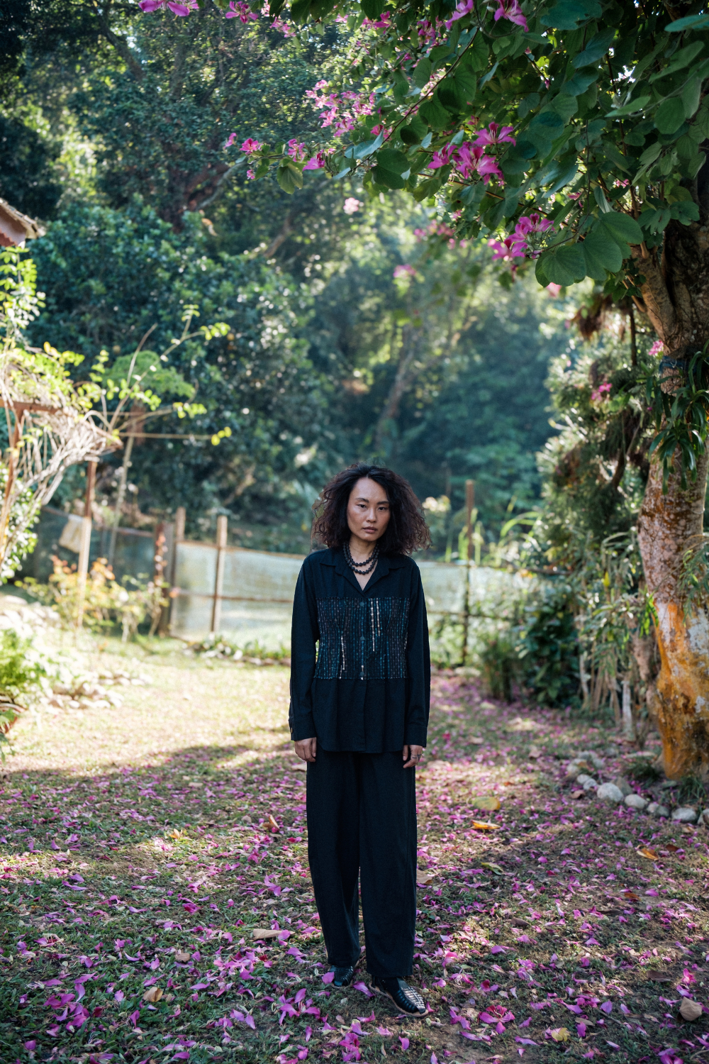 Charmee’s work doesn’t chase seasonal novelty. Instead, she builds garments through the lens of regenerative thinking: plant-based fibres, non-toxic dyes, biodegradable materials, conscious pattern-making, and silhouettes designed to circulate, not accumulate. Every piece begins with the question, “How lightly can we live?”
