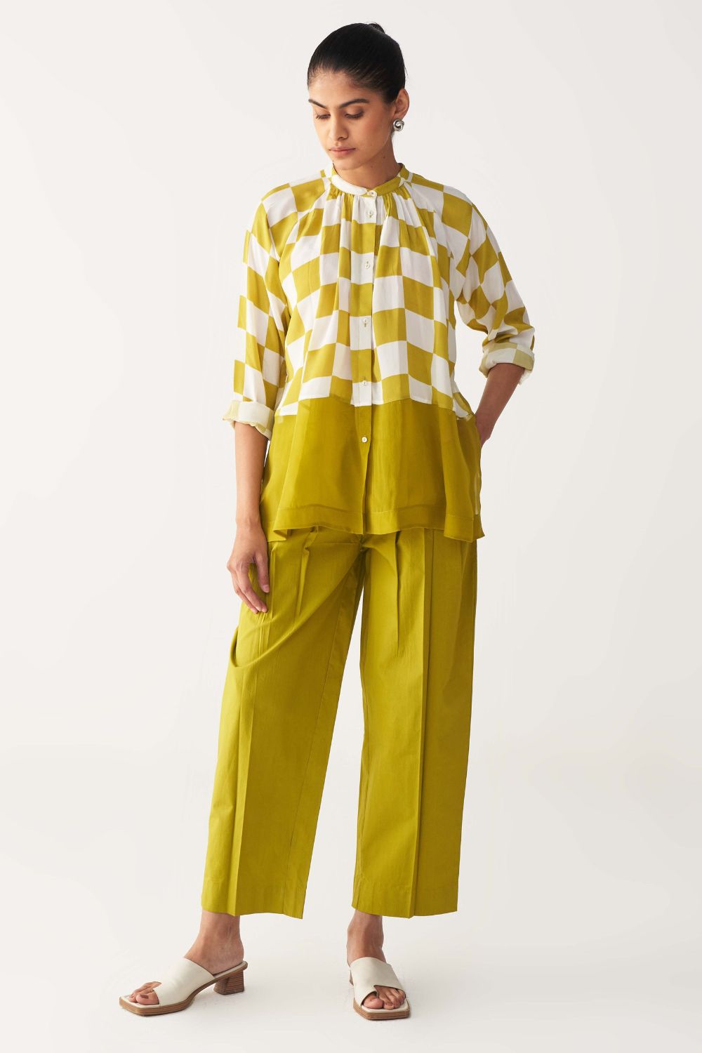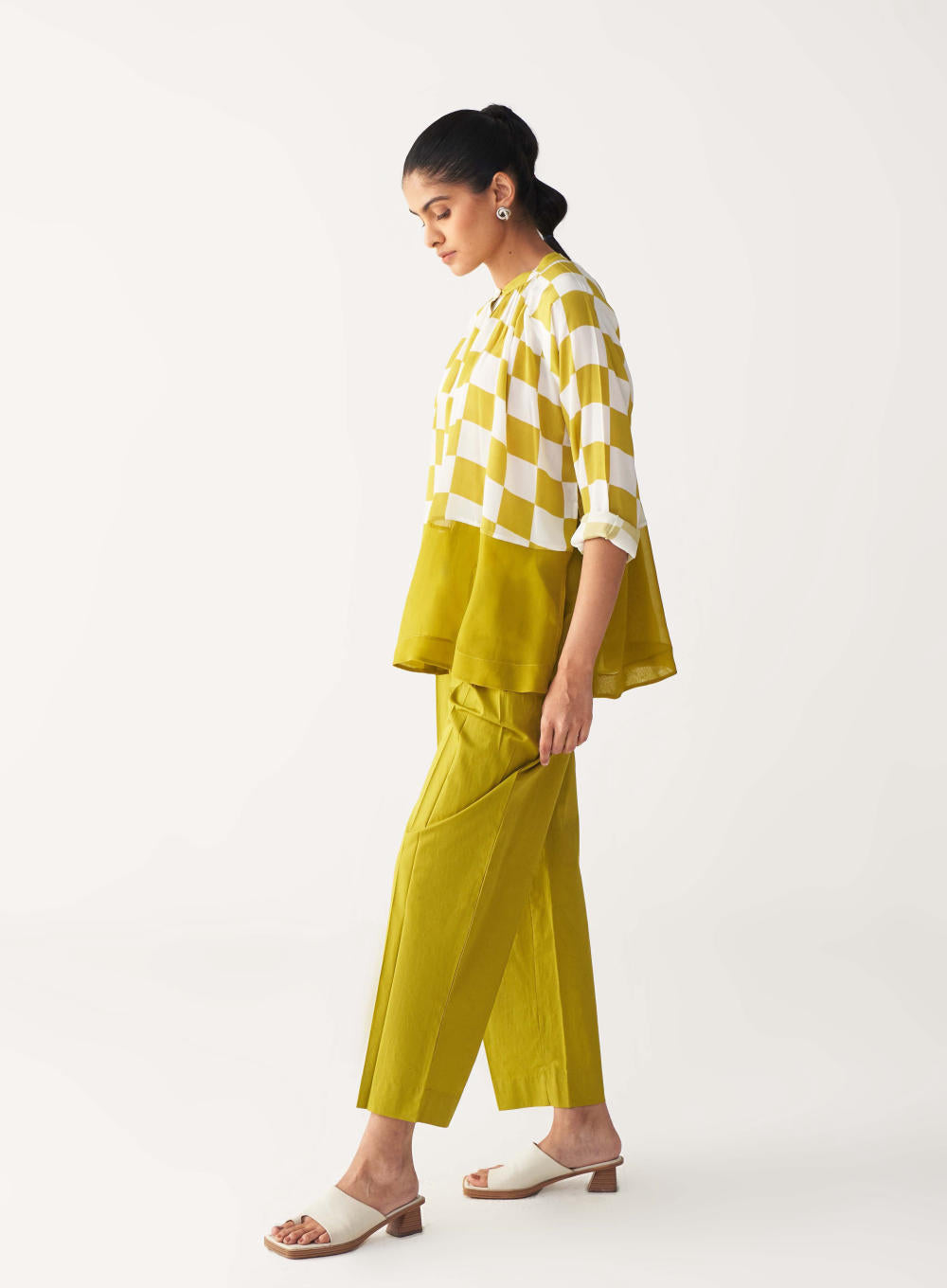 CHECKERED PEASANT TOP CO-ORD-LIME