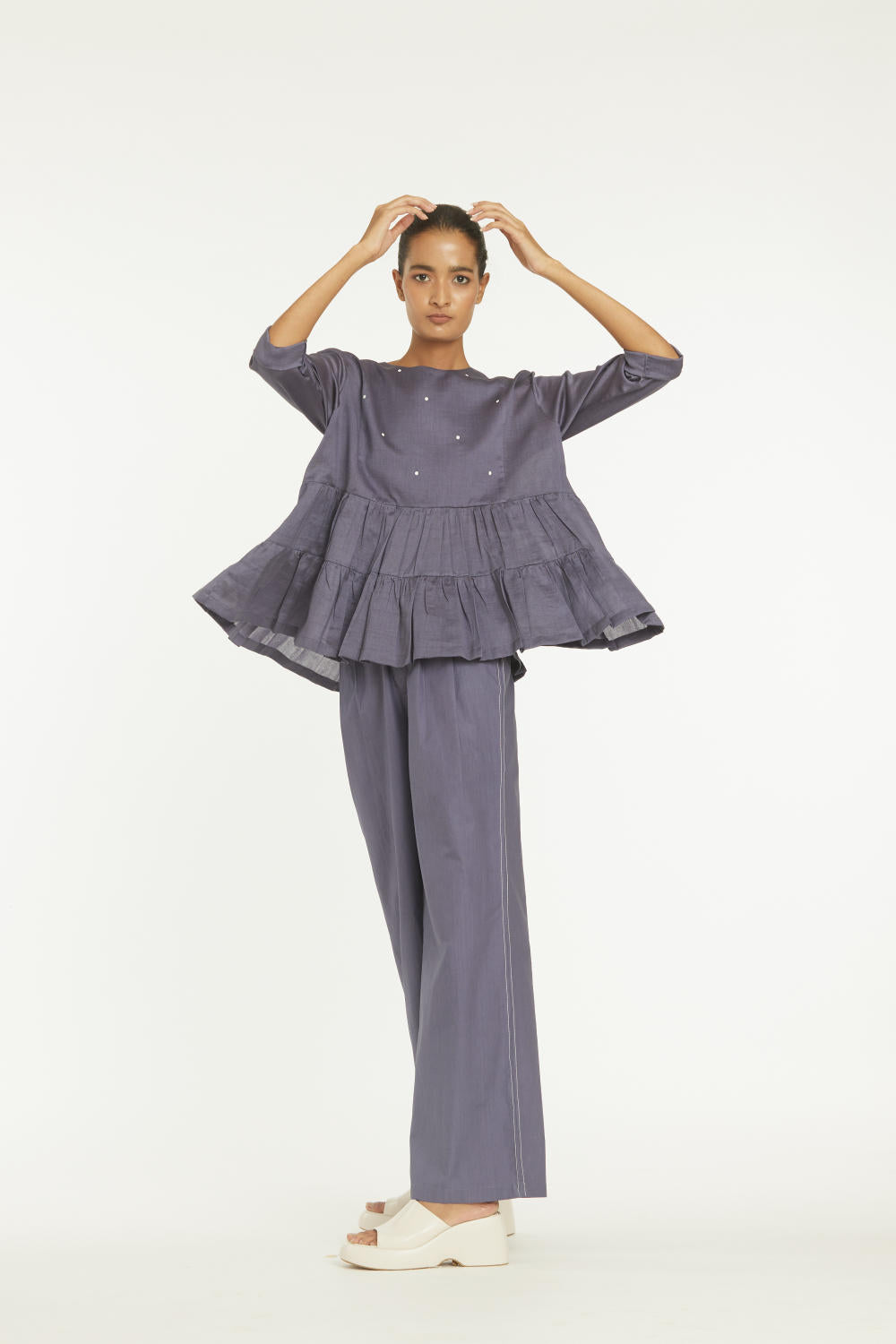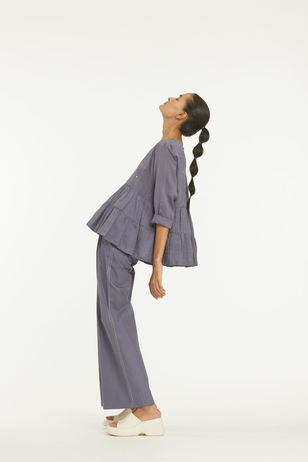 Clever cuts, asymmetric patterns, a neutral palette and simplicity of geometric details form the core aesthetic of the brand. Their love for asymmetry and imperfection clearly reflects in their silhouettes and hemlines. The label is a modern mix of conceptual and wearable clothing which defies age bar as the ensembles exude comfort, more so with their signature anti-fit coords.