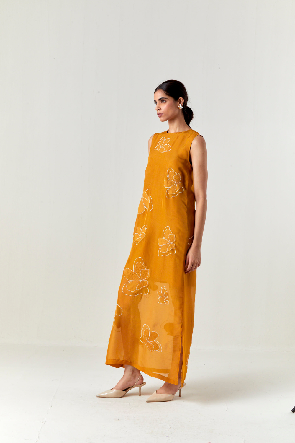 SHEER APPLIQUE FLORAL DRESS