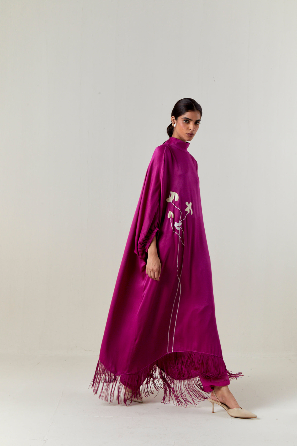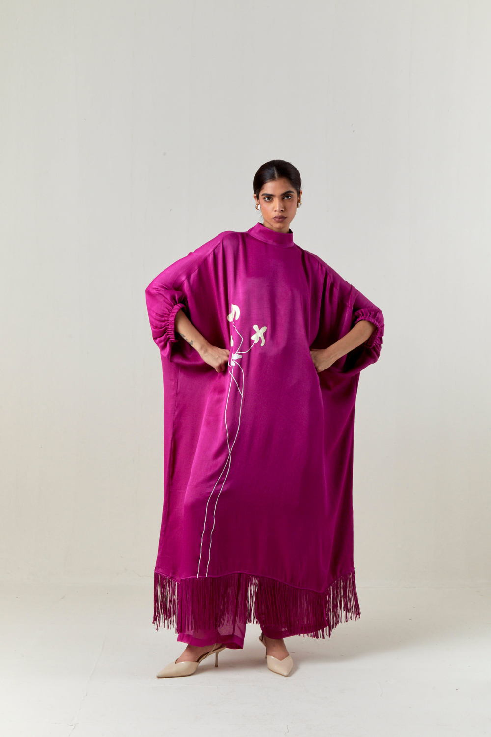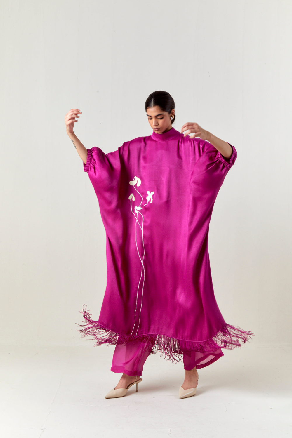 FLORAL FRINGE KAFTAN CO-ORD-FUCHSIA