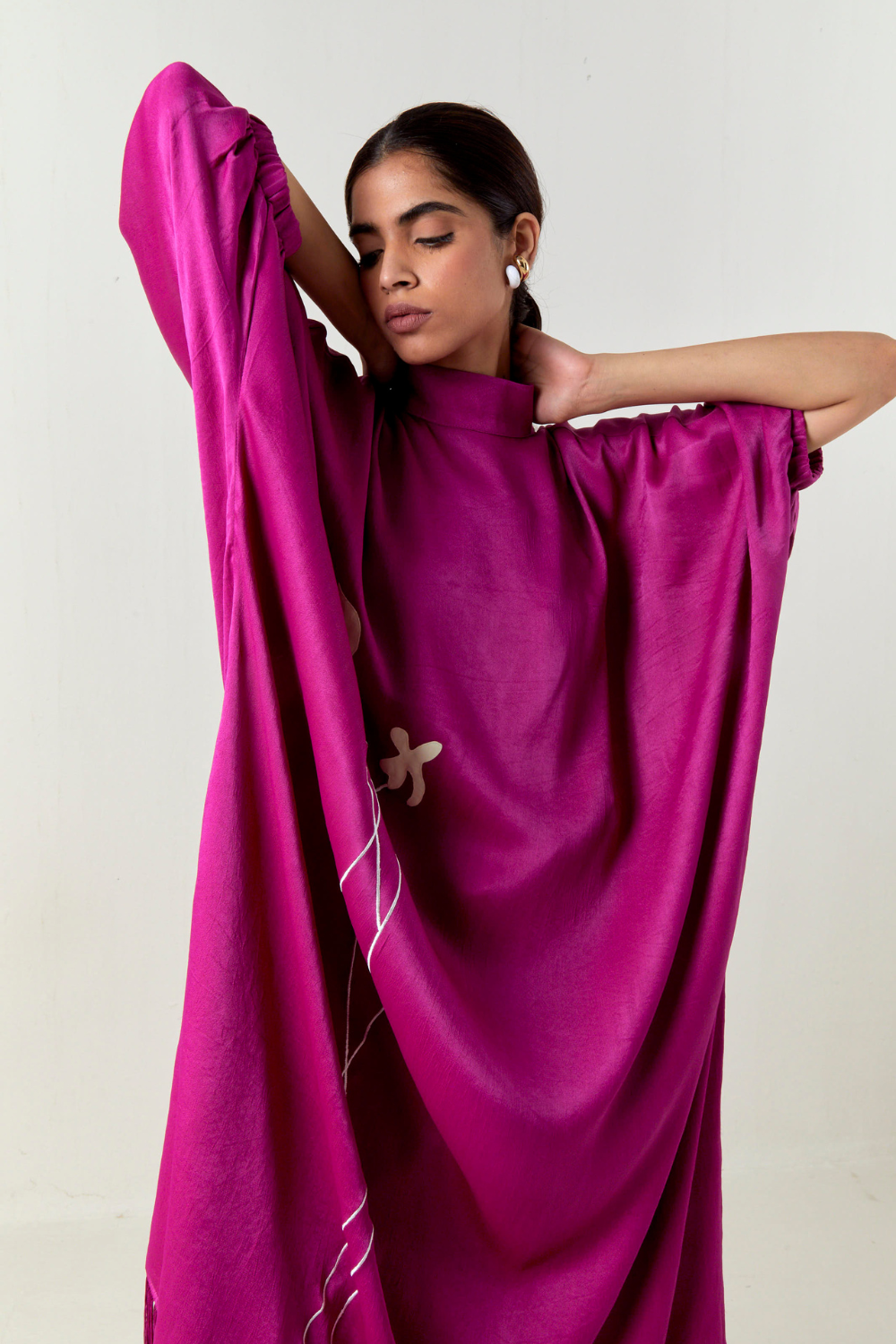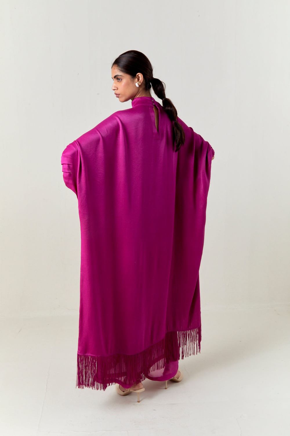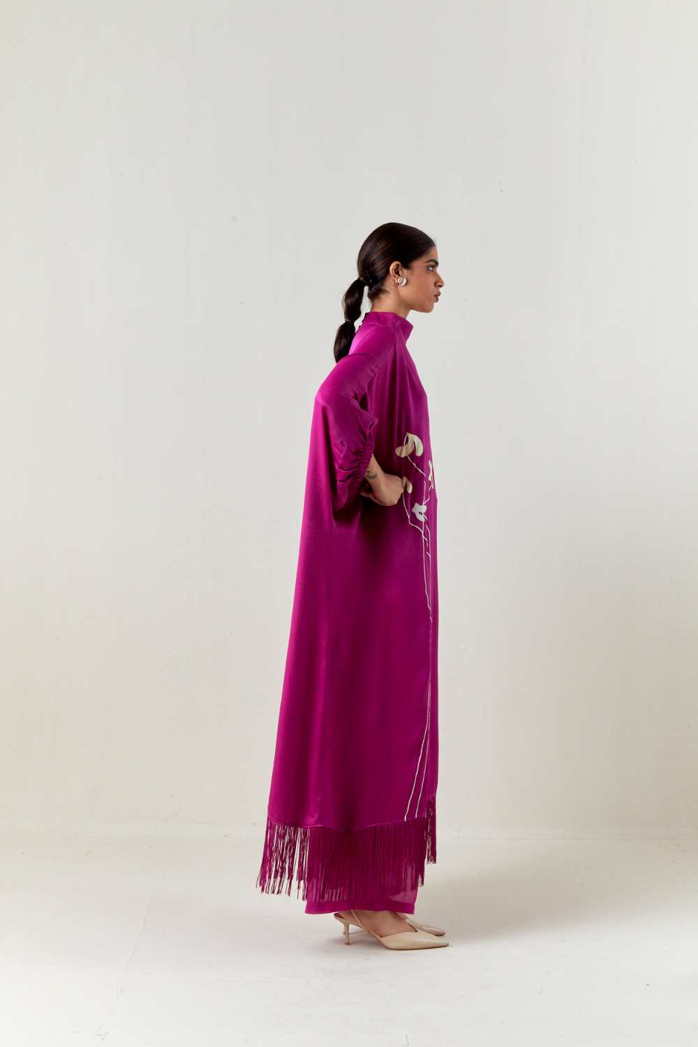 FLORAL FRINGE KAFTAN CO-ORD-FUCHSIA