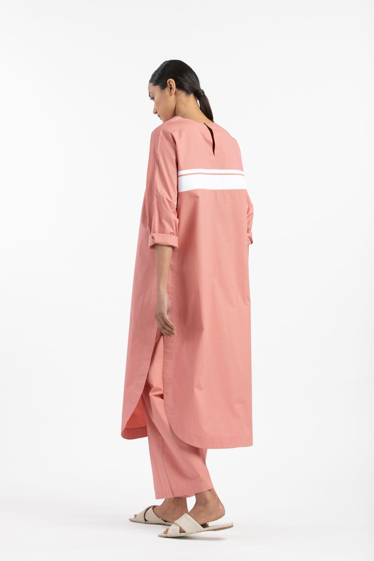 Clever cuts, asymmetric patterns, a neutral palette and simplicity of geometric details form the core aesthetic of the brand. Their love for asymmetry and imperfection clearly reflects in their silhouettes and hemlines. The label is a modern mix of conceptual and wearable clothing which defies age bar as the ensembles exude comfort, more so with their signature anti-fit coords.