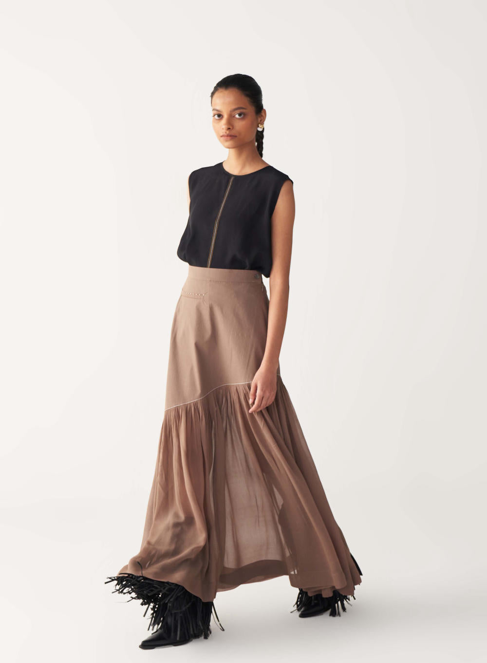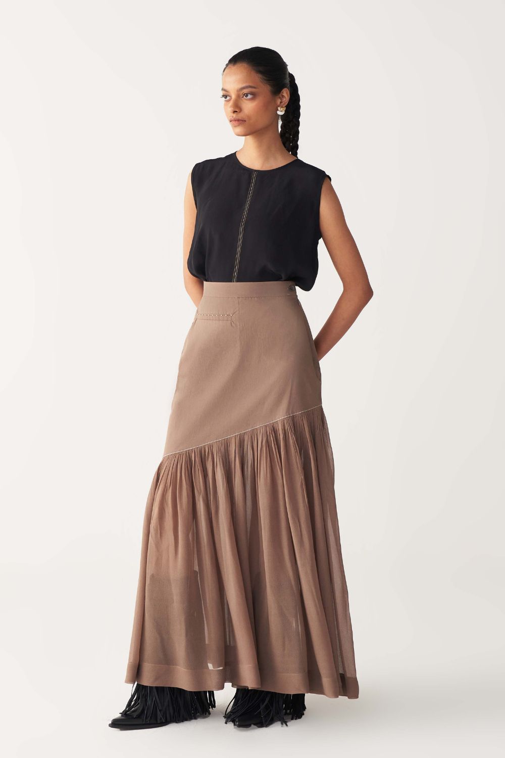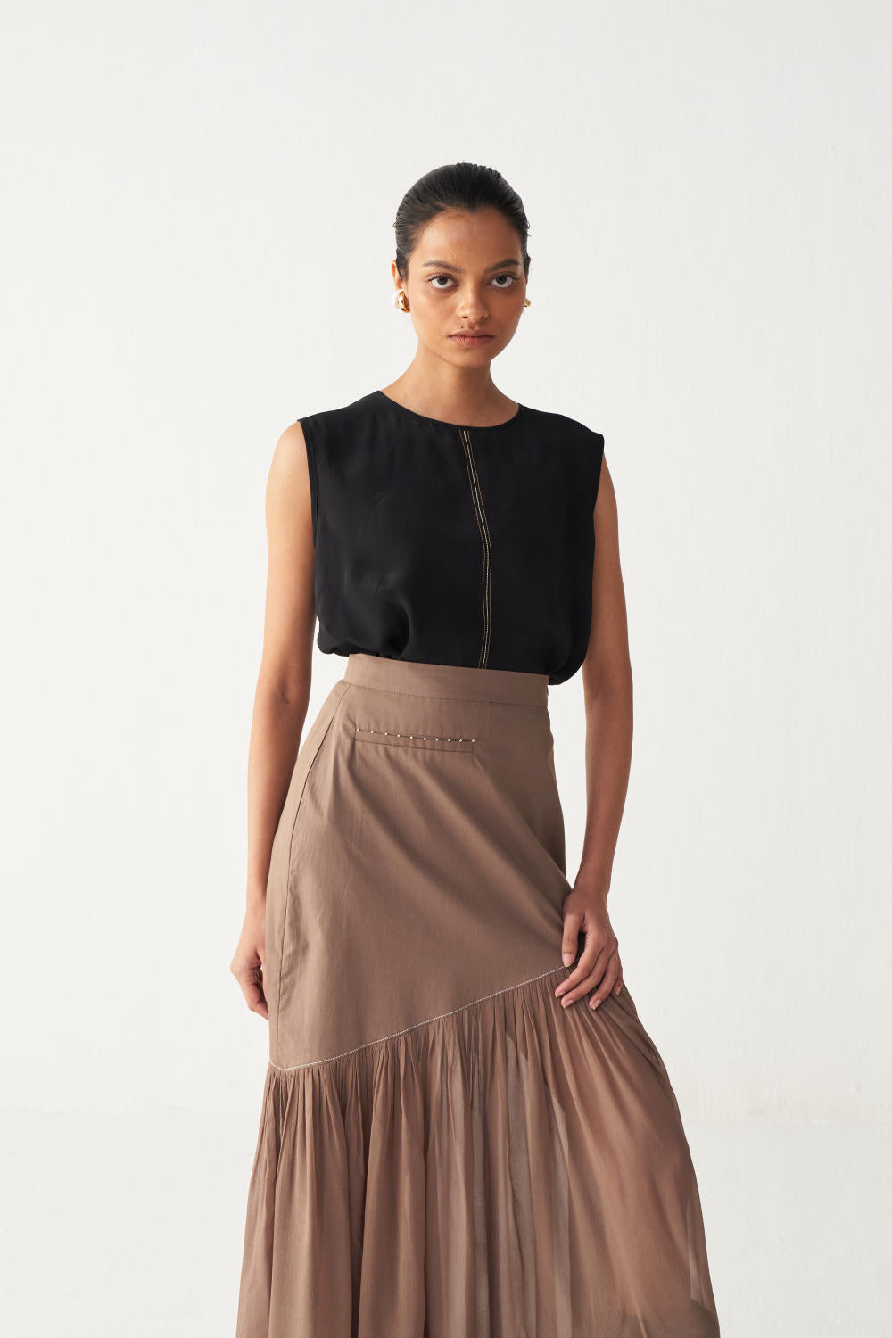 Fabric: TOP: SILK CREPE BOTTOM: POPLIN + GEORGETTE