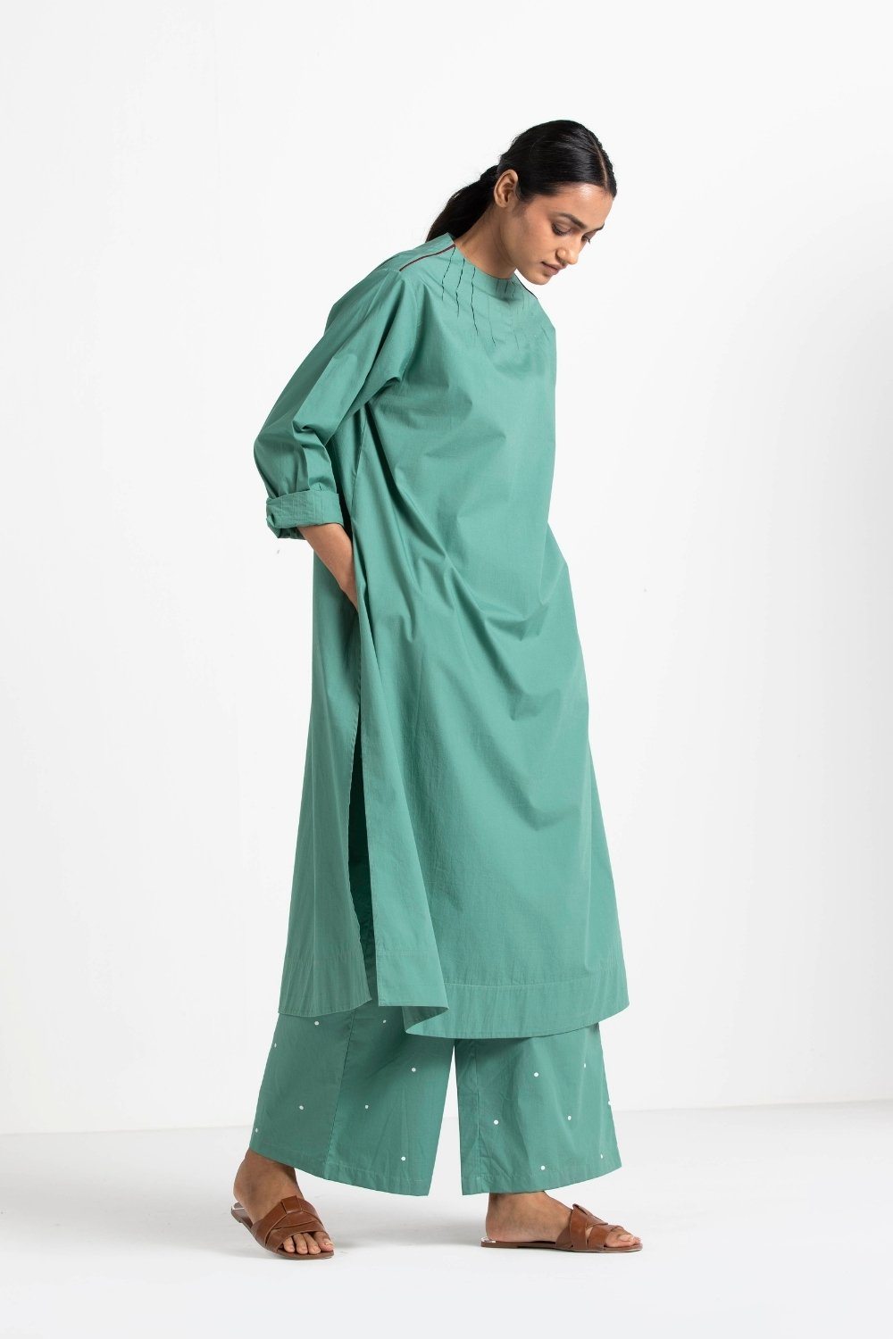 Clever cuts, asymmetric patterns, a neutral palette and simplicity of geometric details form the core aesthetic of the brand. Their love for asymmetry and imperfection clearly reflects in their silhouettes and hemlines. The label is a modern mix of conceptual and wearable clothing which defies age bar as the ensembles exude comfort, more so with their signature anti-fit coords.