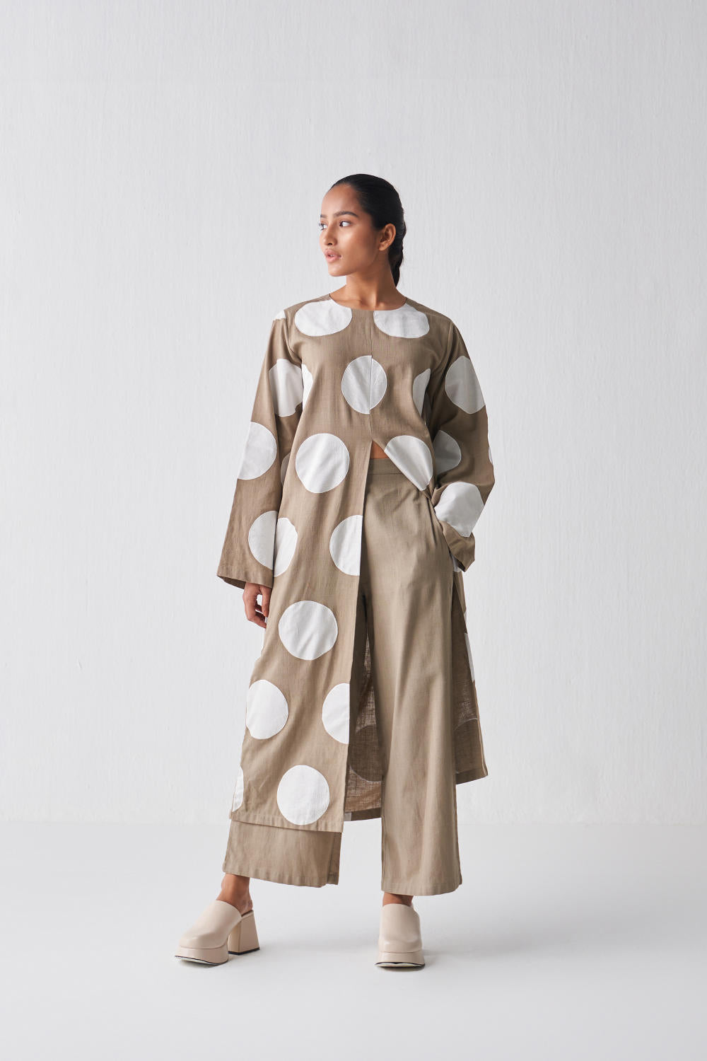 Product Type: Co-ord Set (FRONT SLIT APPLIQUE TUNIC - HIGH WAIST BROAD BOTTOM)