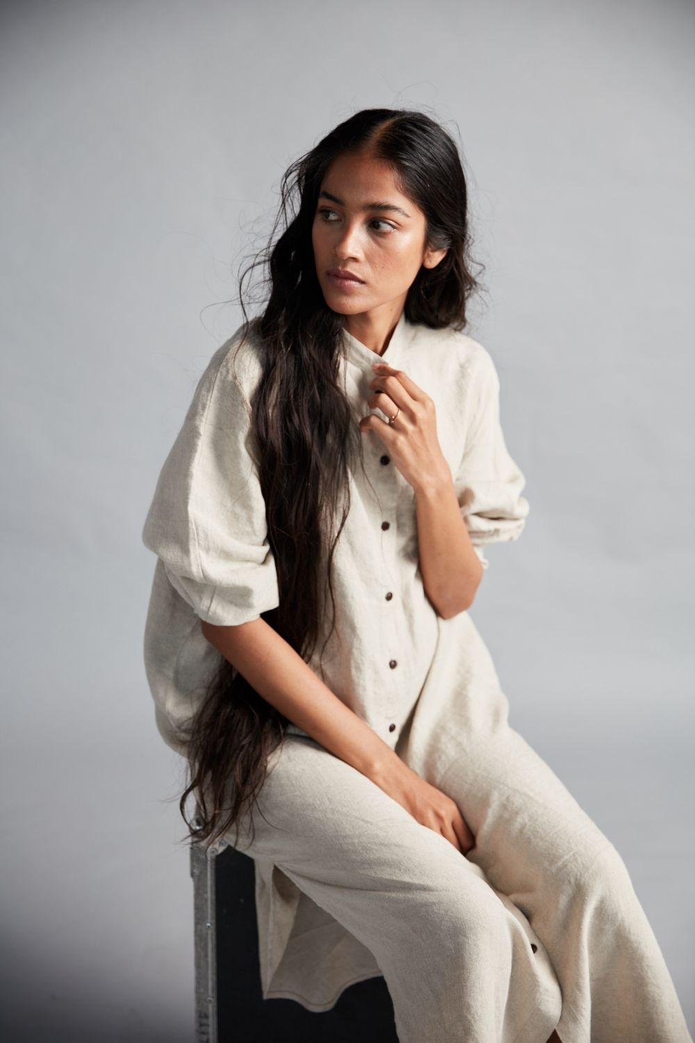 Their pieces are crafted exclusively from high-quality, ethically sourced Euroflax-certified linen, chosen for its purity, longevity, and low environmental impact. The brand’s design language mirrors the nature of the textile itself: clean-lined, airy, minimal, and beautifully unfussy. These are garments that live with you — softening, easing, and developing their own patina over time.