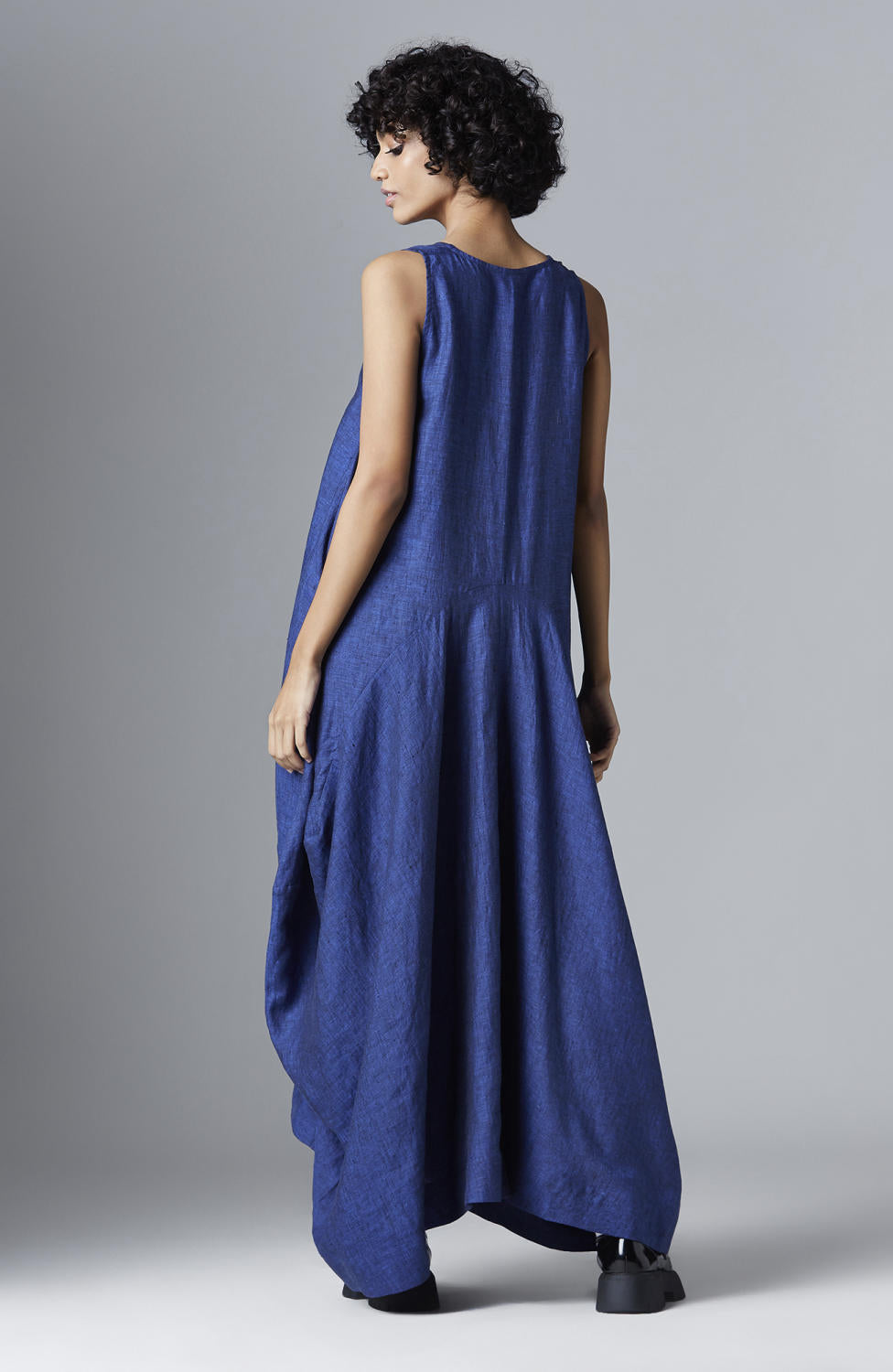 Chola’s universe begins with thoughtful materials. Recycled cottons, post-consumer fabrics, and free-cutting techniques come together in a kind of mindful choreography—one that honours form without creating waste, and prioritises movement over rigidity. This is clothing that feels lived-in yet architectural; pared-back yet quietly avant-garde.