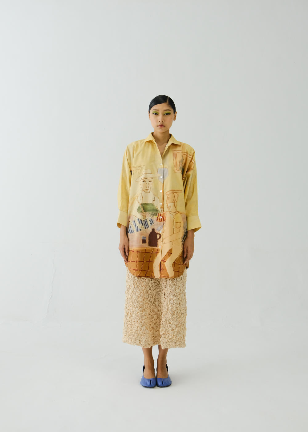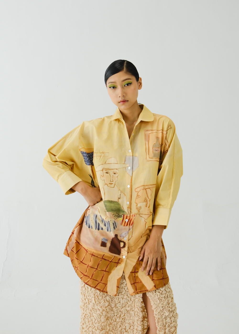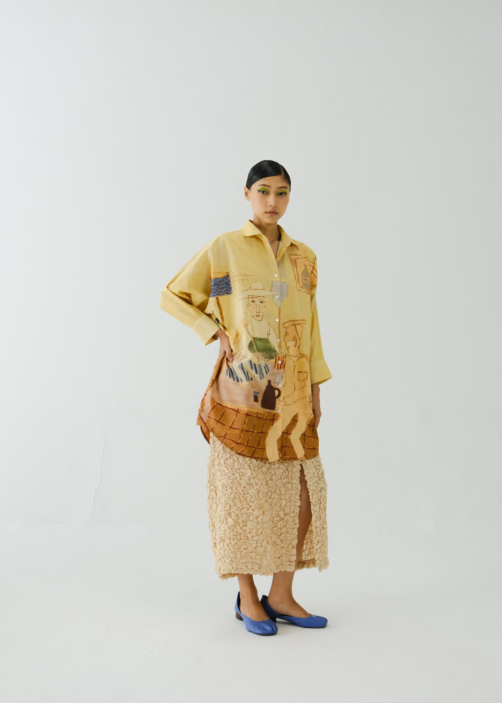 CORD blurs the line between art and attire in a way few labels dare to. Here, fabrics become canvases; illustrations—drawn by hand, steeped in imagination—flow across silhouettes that feel sculptural yet deeply wearable. Each piece has a texture of memory to it, as if it carries echoes of a past life, now reframed for a contemporary world.