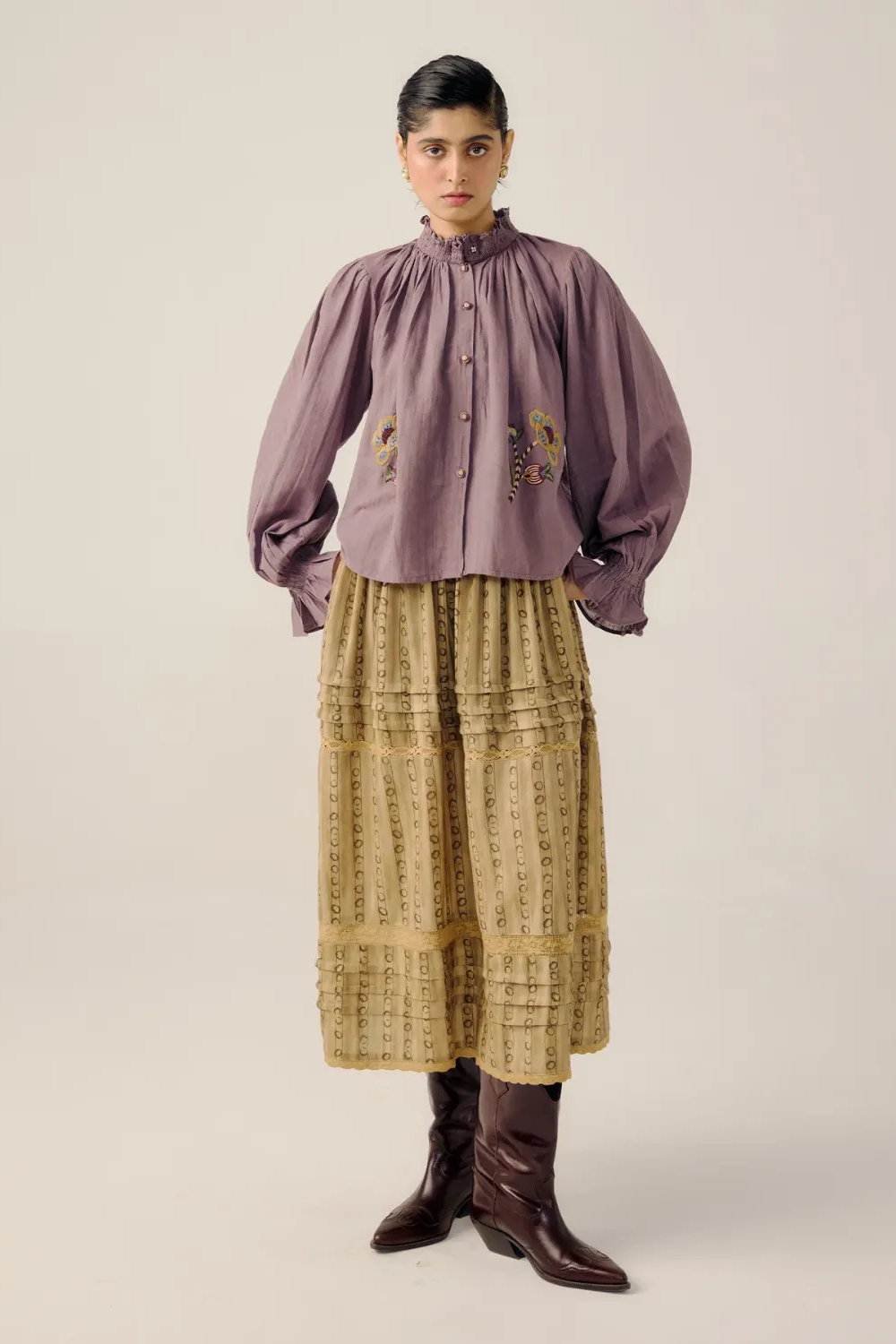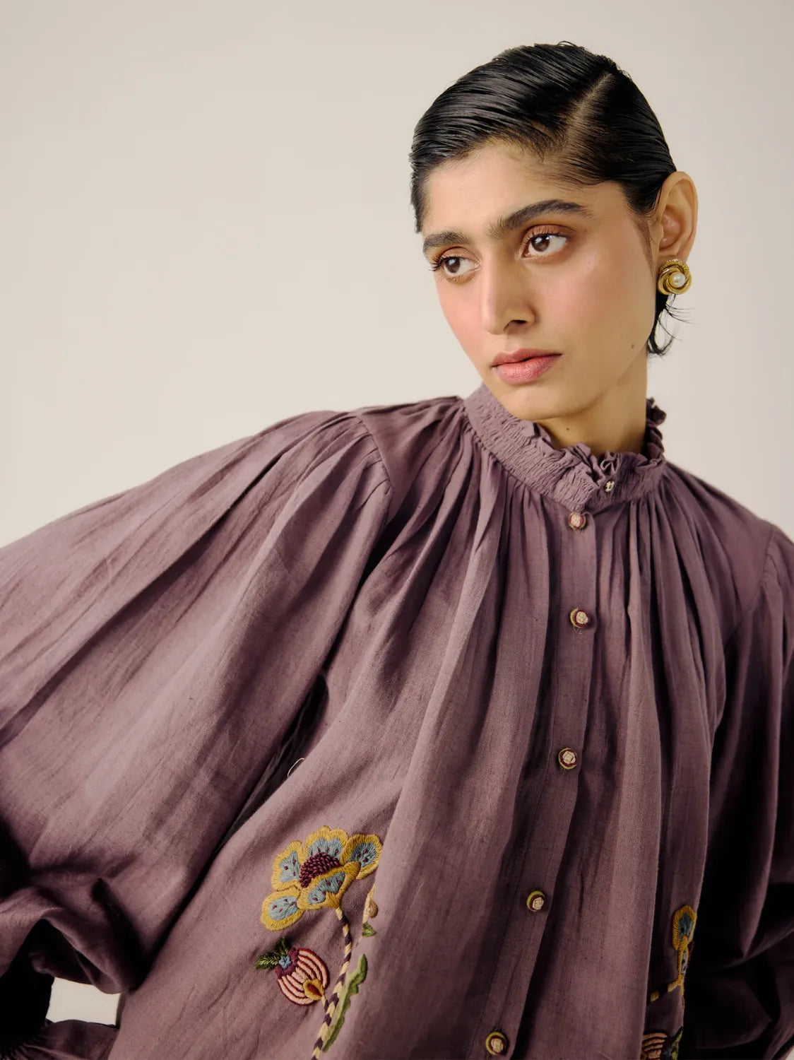 Details : Smocking details on the cuff & neck, front button fastening