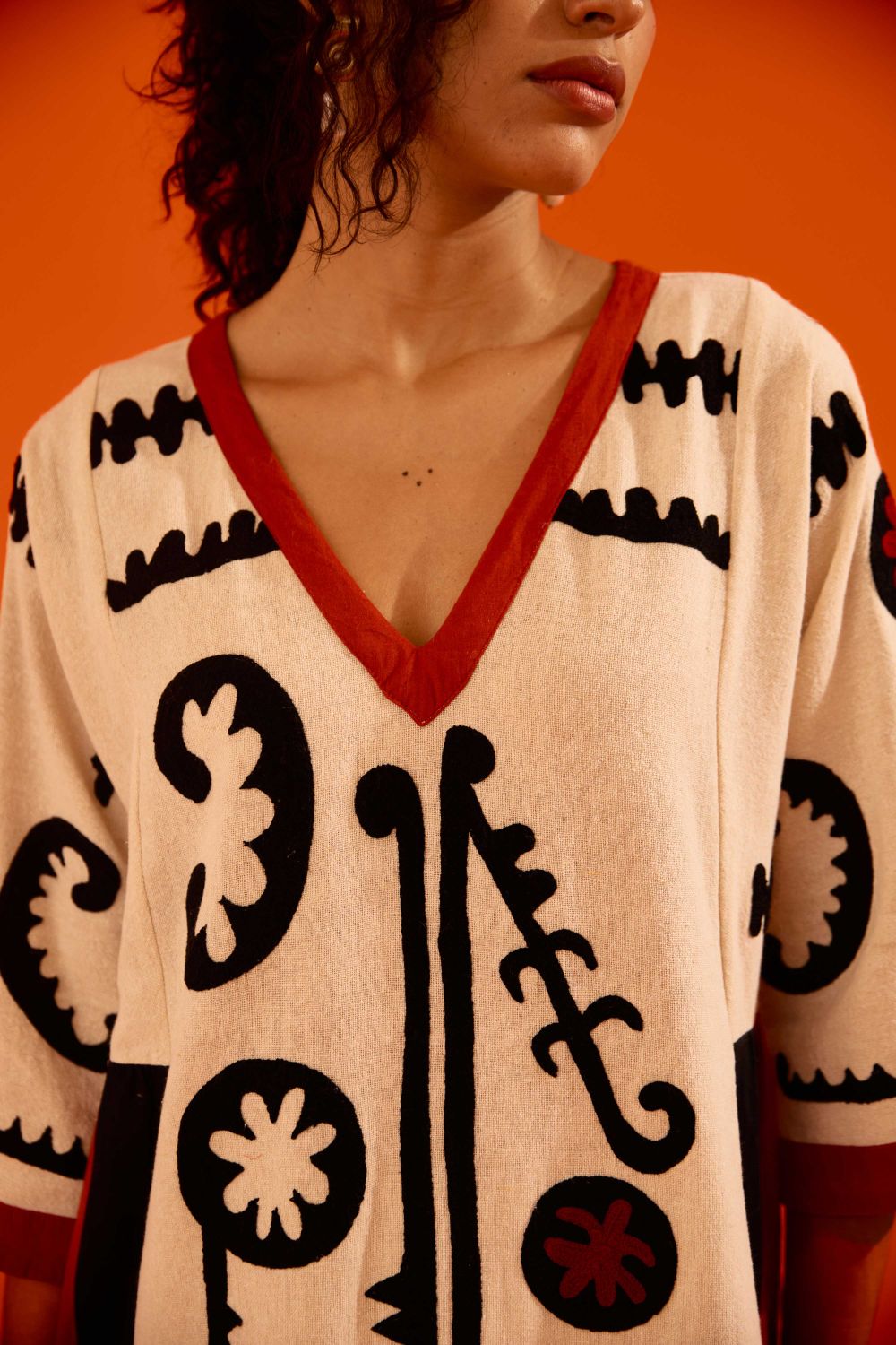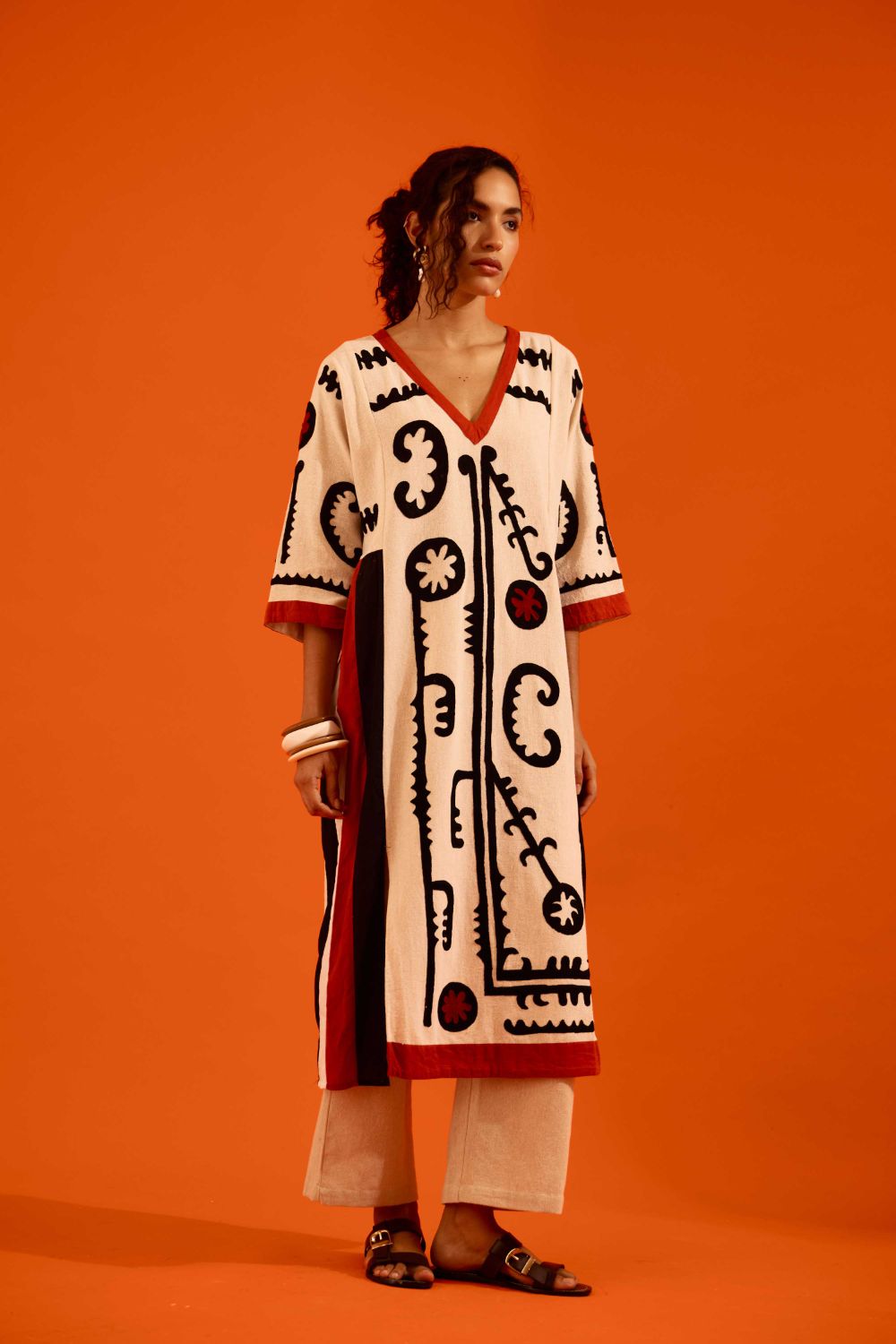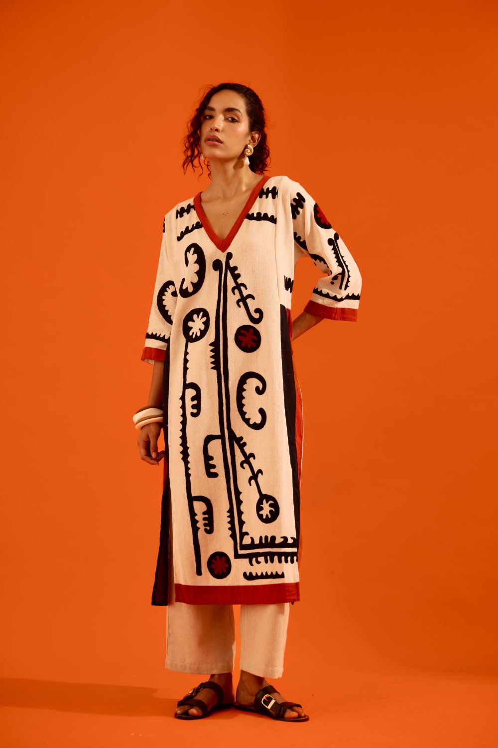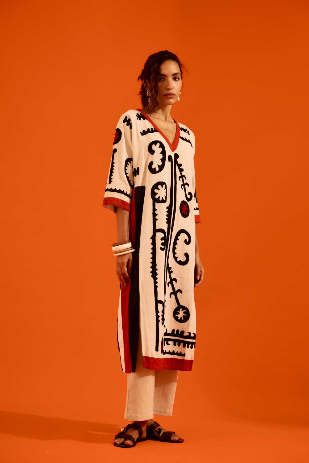 Natural Jute Thread Embroidered Tunic Set with Multi Color Maasai Motif