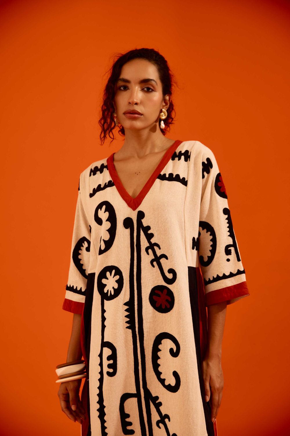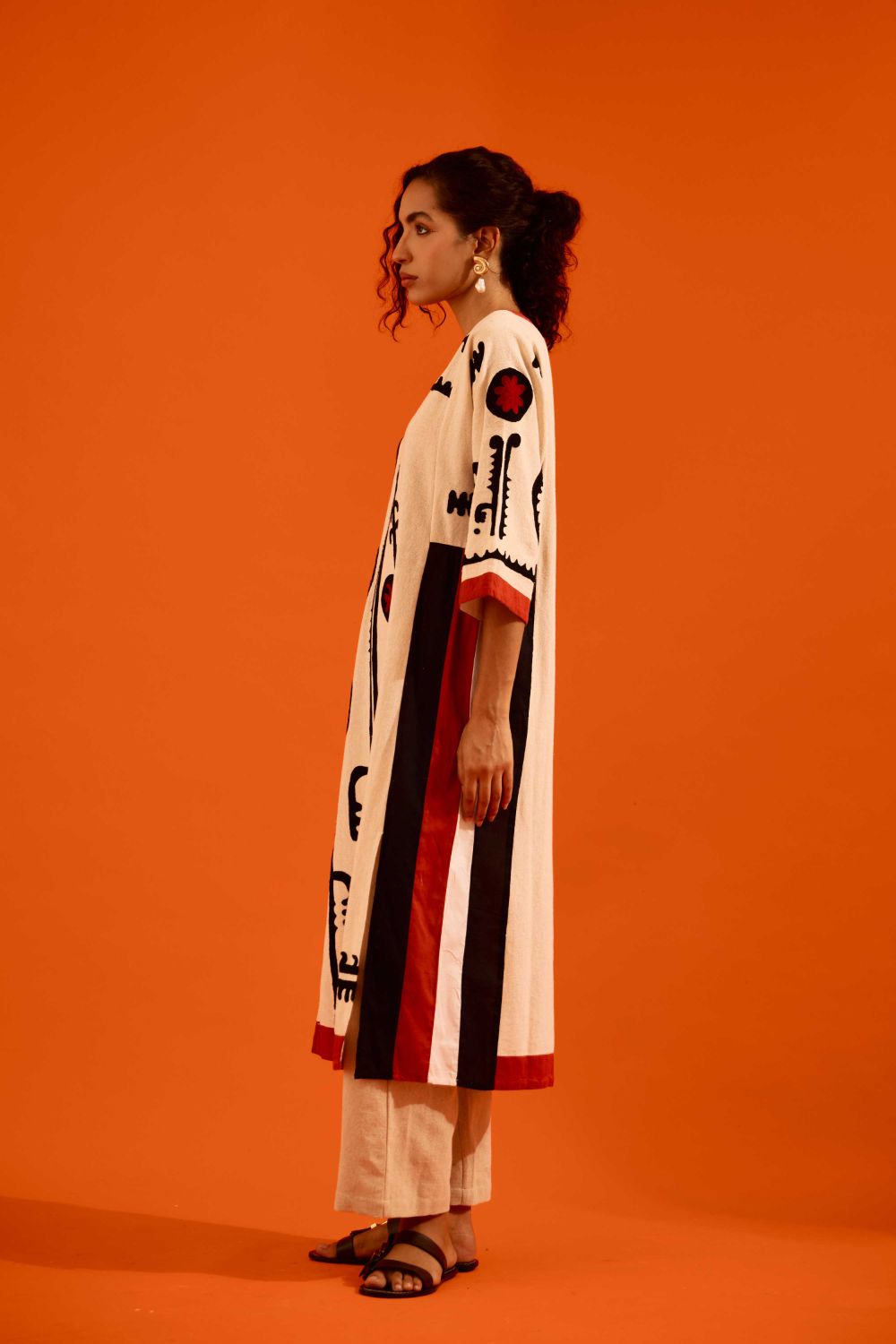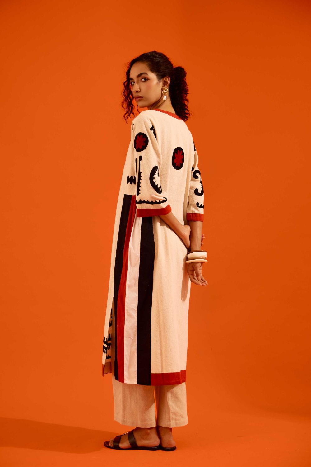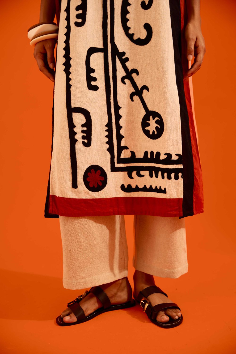 Natural Jute Thread Embroidered Tunic Set with Multi Color Maasai Motif