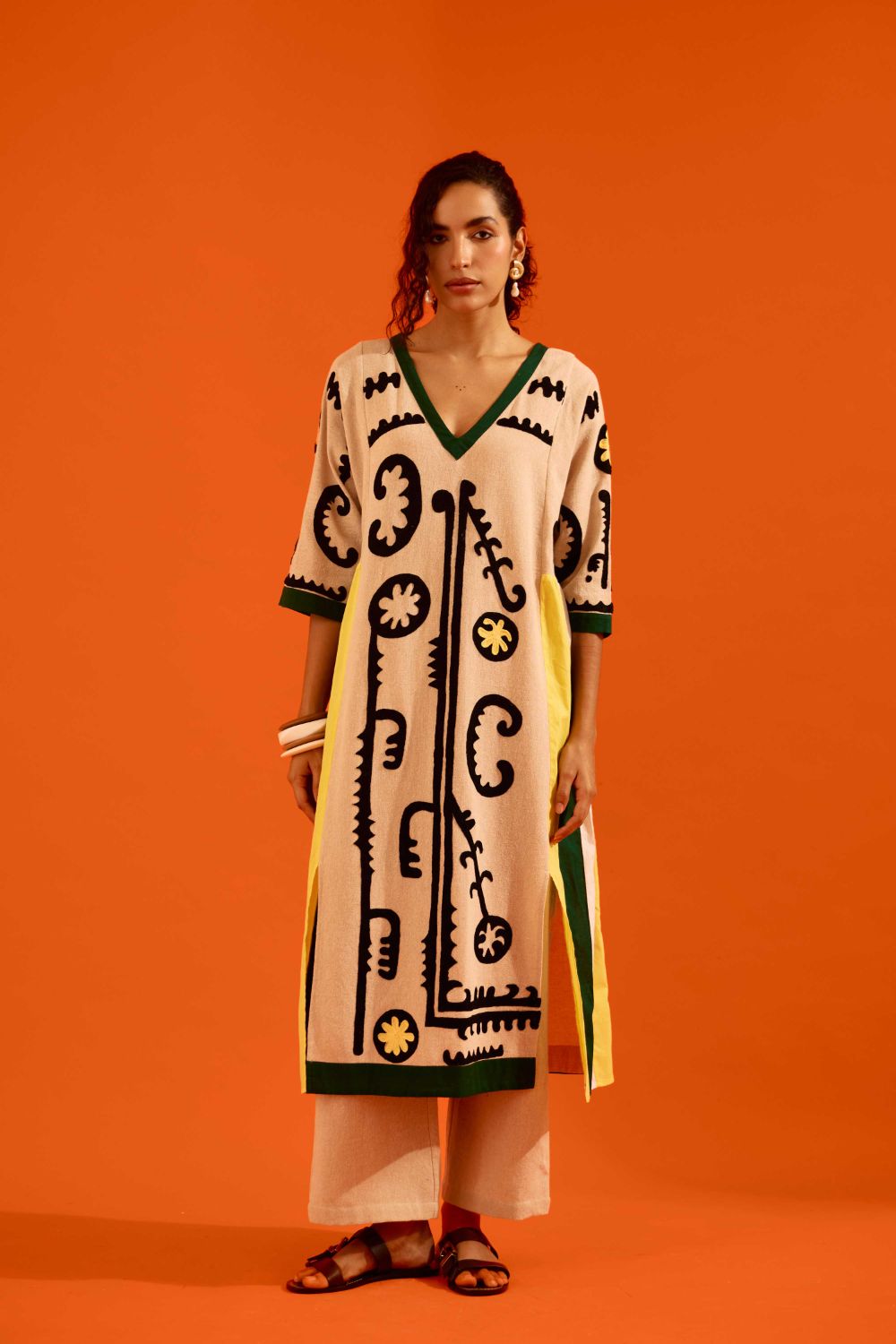 Natural Jute Thread Embroidered Tunic Set with Multi Color Maasai Motif