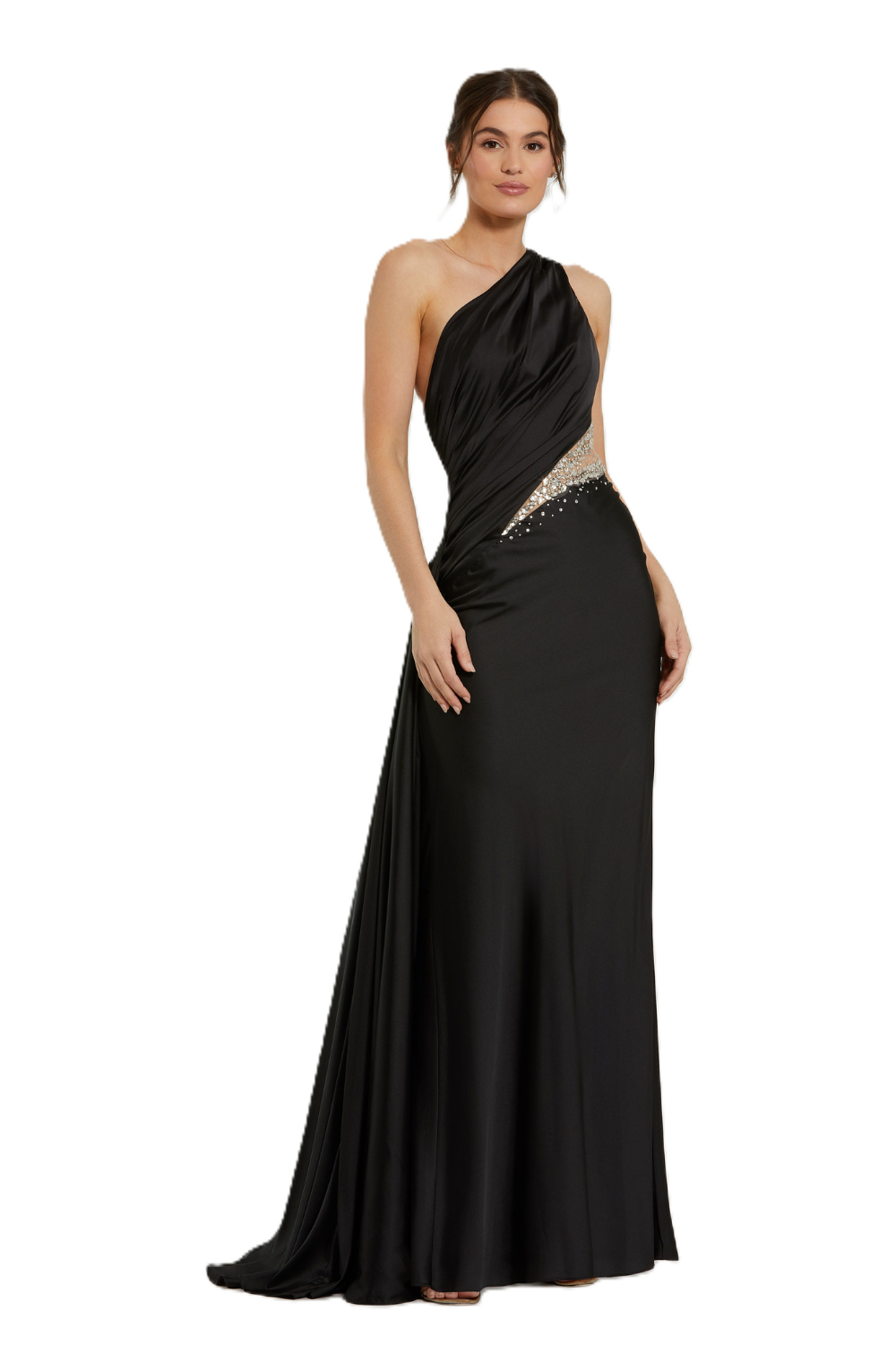 Founded in Chicago by designer Mac Duggal, the label has become a red-carpet language of its own—seen at the Oscars, the Emmys, the Met-adjacent soirées, and the kind of celebrations where the lighting is soft, the music is warm, and the dress needs no introduction. Known for sculpted drapes, sequined textiles, and silhouettes that photograph with cinematic clarity, Mac Duggal designs gowns that balance drama with precision.