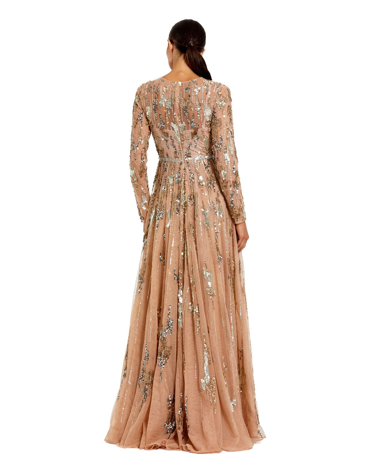 Allover mixed sequin embellishments in vertical and scattered motifs