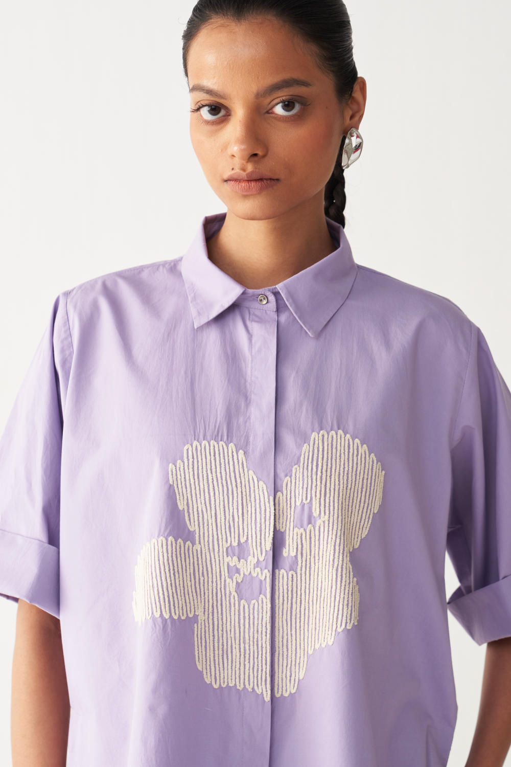 FLORAL EMB. SHIRT CO-ORD-LAVENDER